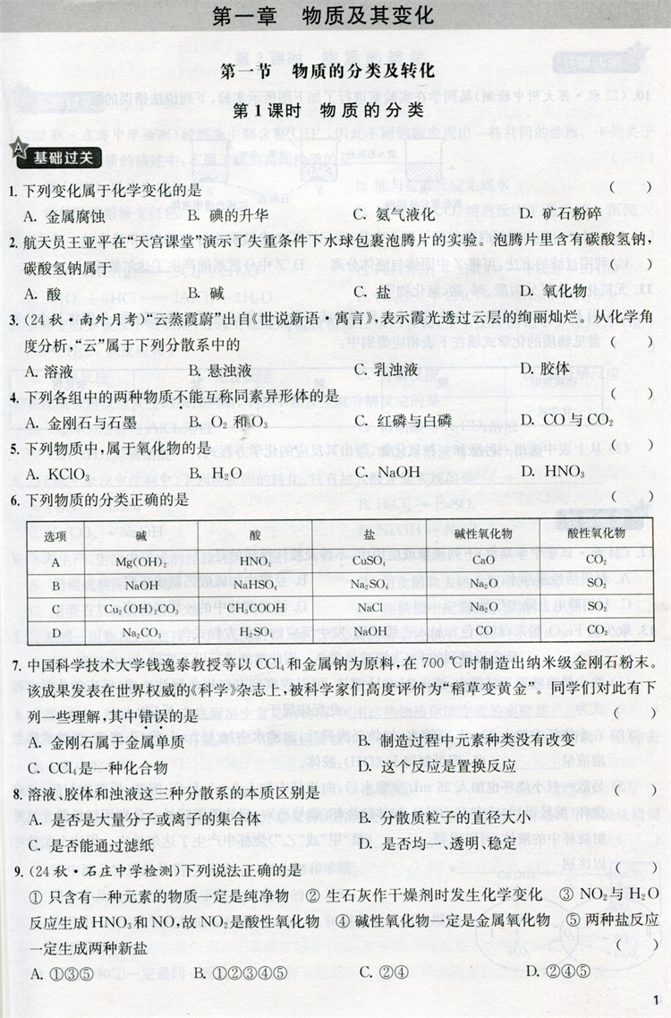 2025年 凤凰新学案 高中化学 人教版必修第一册 课堂本 高中教辅 学生用书 核心素养版 高中化学同步练习 江苏凤凰教育出版社