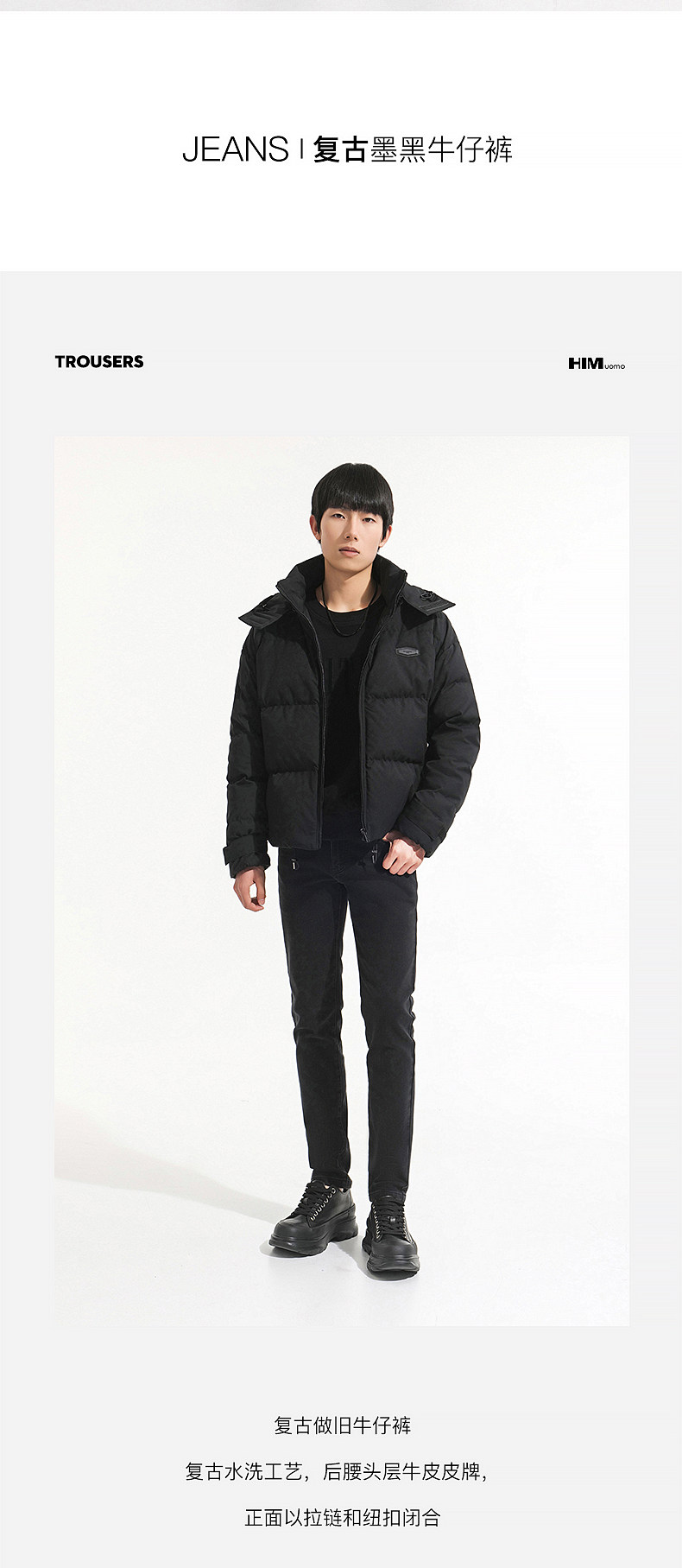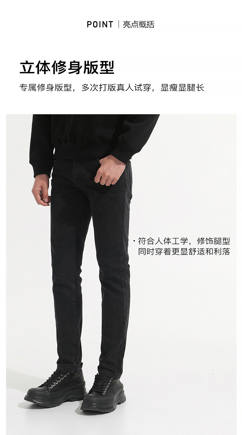 HIM漢崇 经典耐磨微弹牛仔裤男潮流洗水修身小脚休闲裤 2025冬季