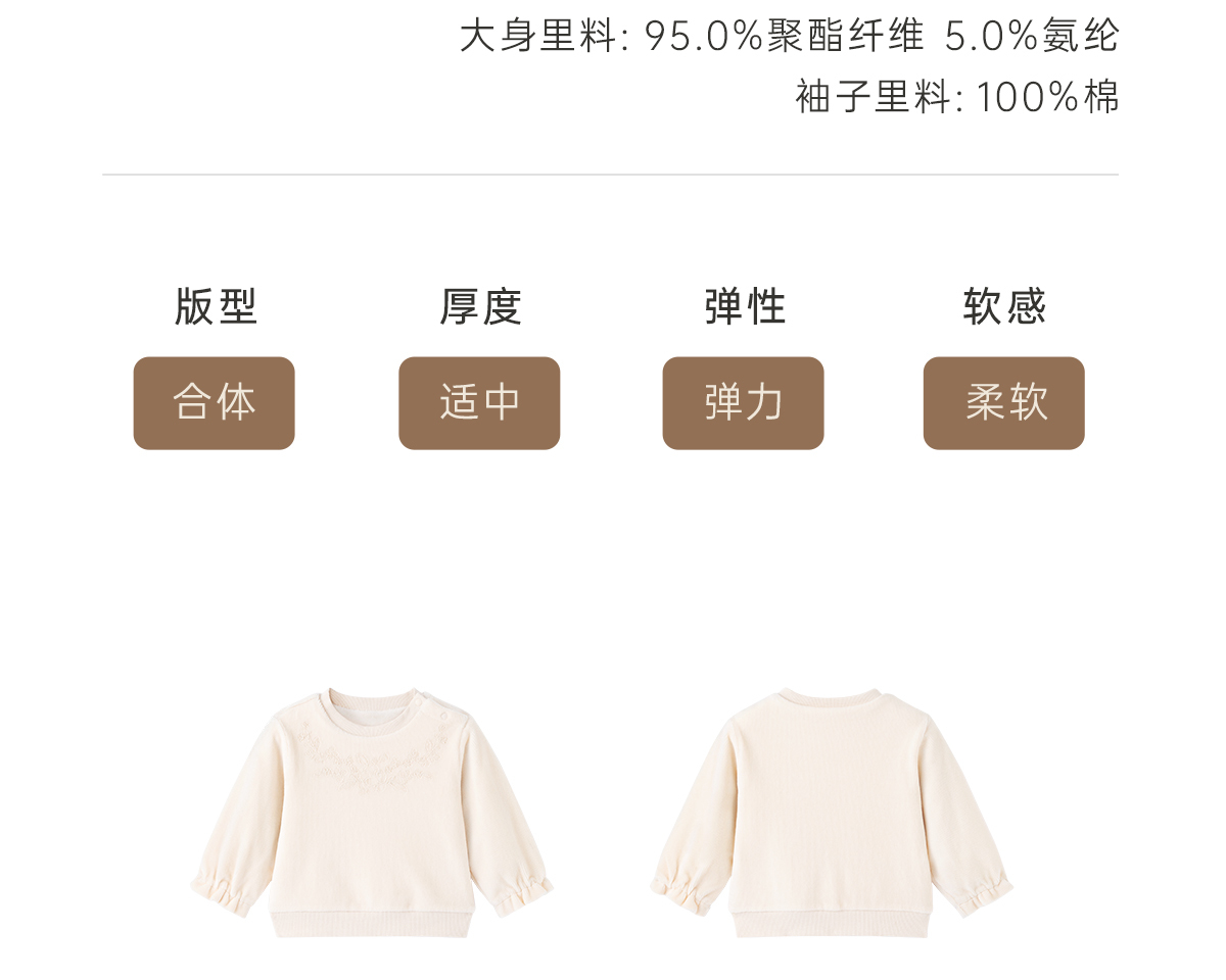 【商场同款】英氏童装长袖套头衫女宝宝秋冬保暖上装秋季新品