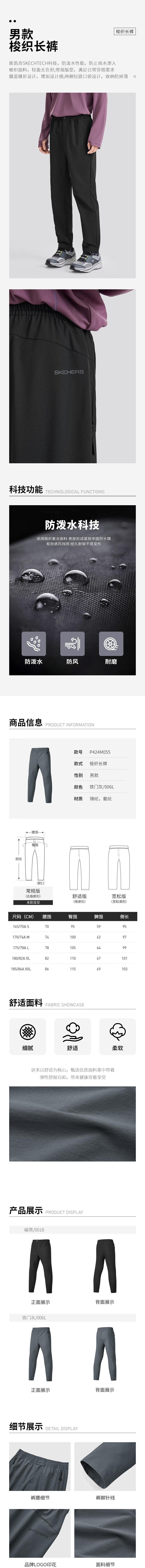 Skechers斯凯奇 男梭织长裤 P424M055-0018