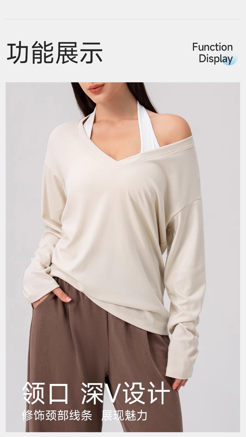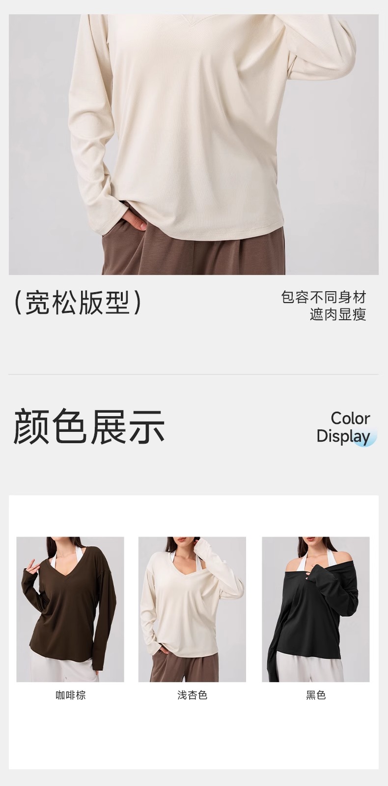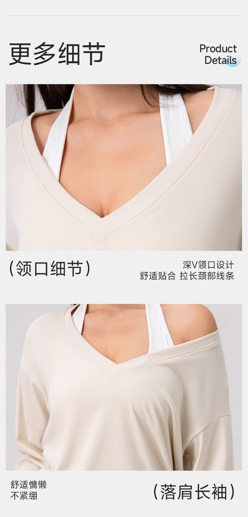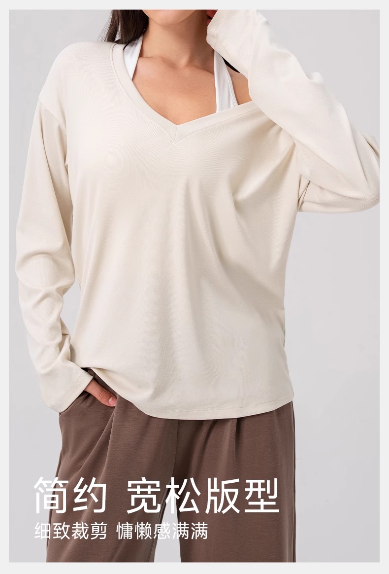跃牌【欲动春风】系列 瑜伽服v领长袖运动上衣莱赛尔软糯亲肤健身跑步T恤52556