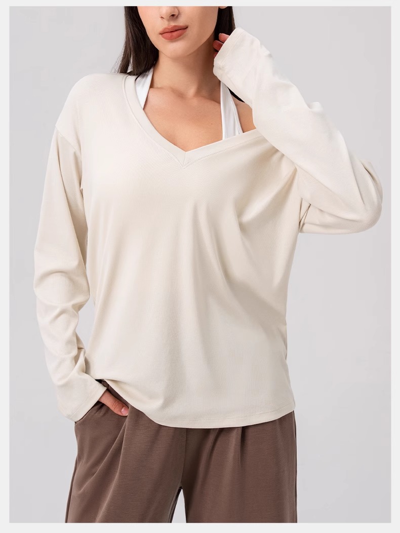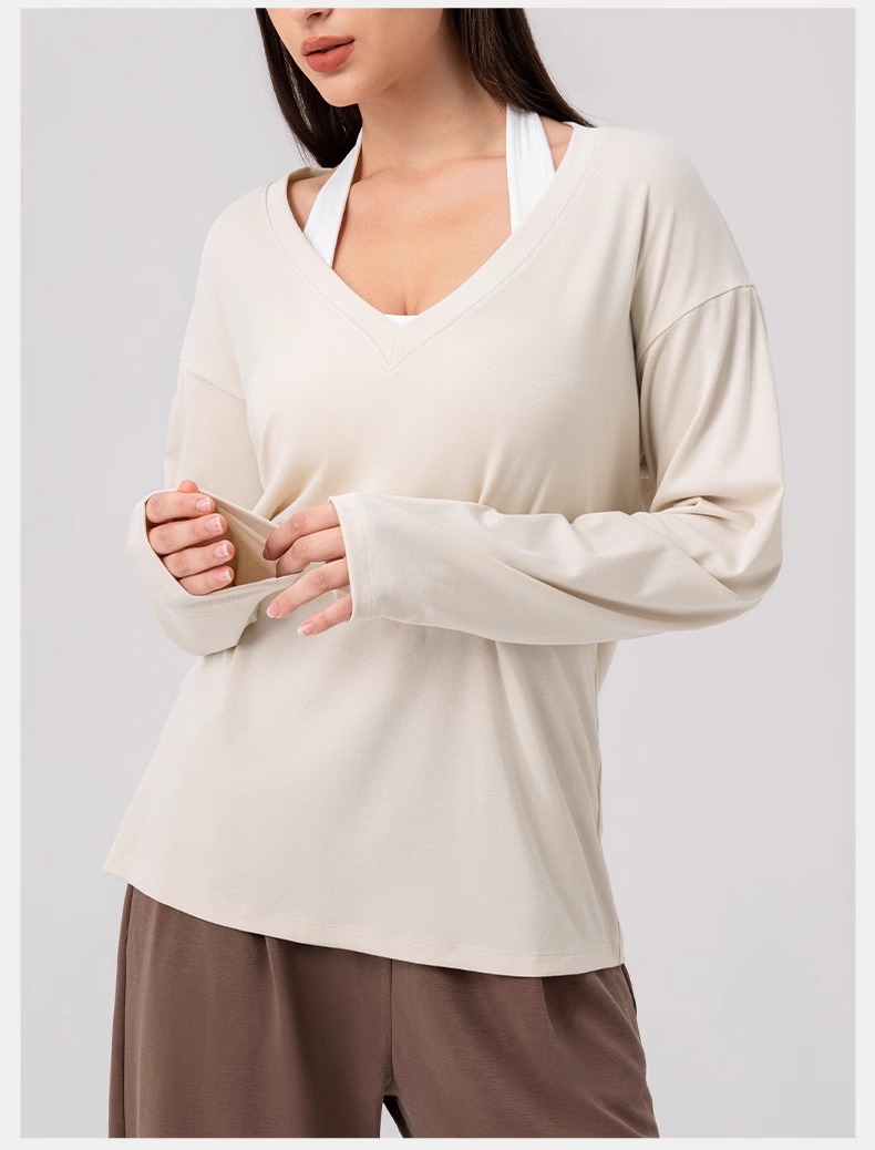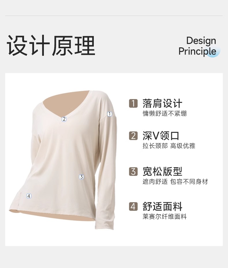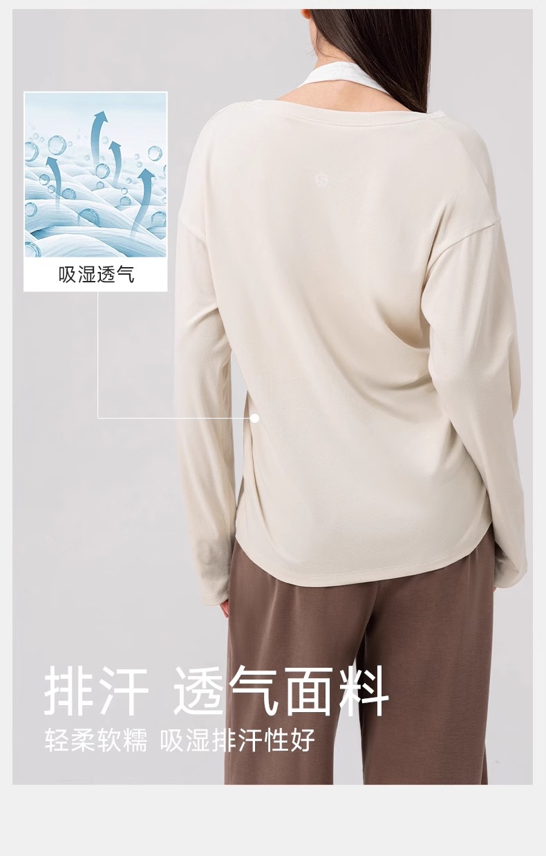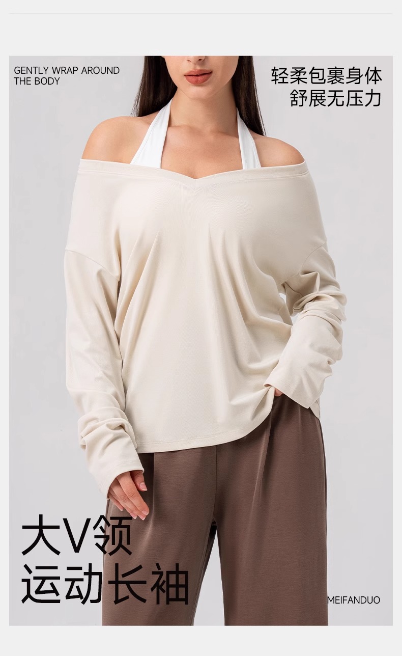 跃牌【欲动春风】系列 瑜伽服v领长袖运动上衣莱赛尔软糯亲肤健身跑步T恤52556