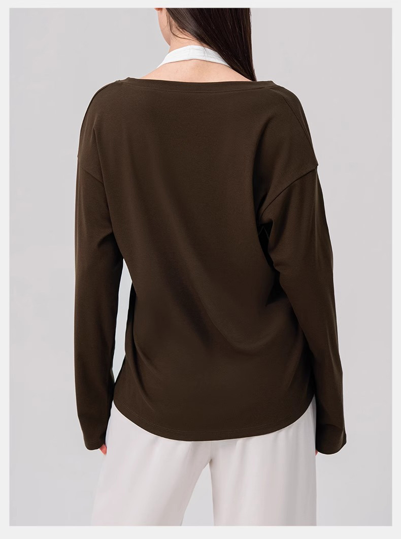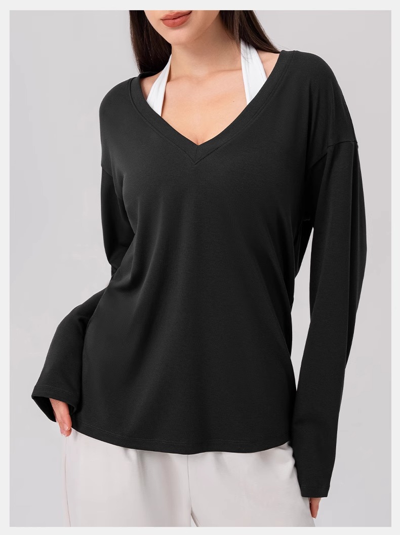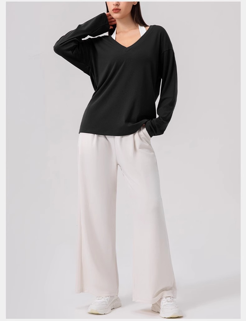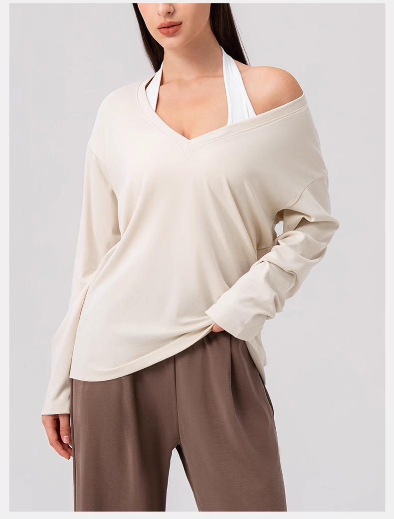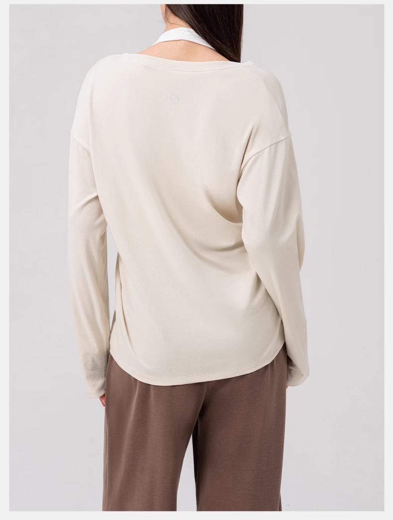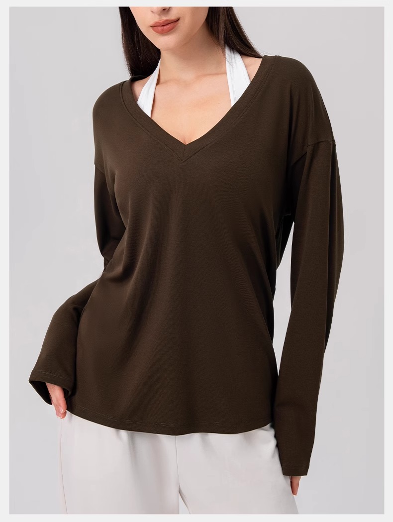 跃牌【欲动春风】系列 瑜伽服v领长袖运动上衣莱赛尔软糯亲肤健身跑步T恤52556