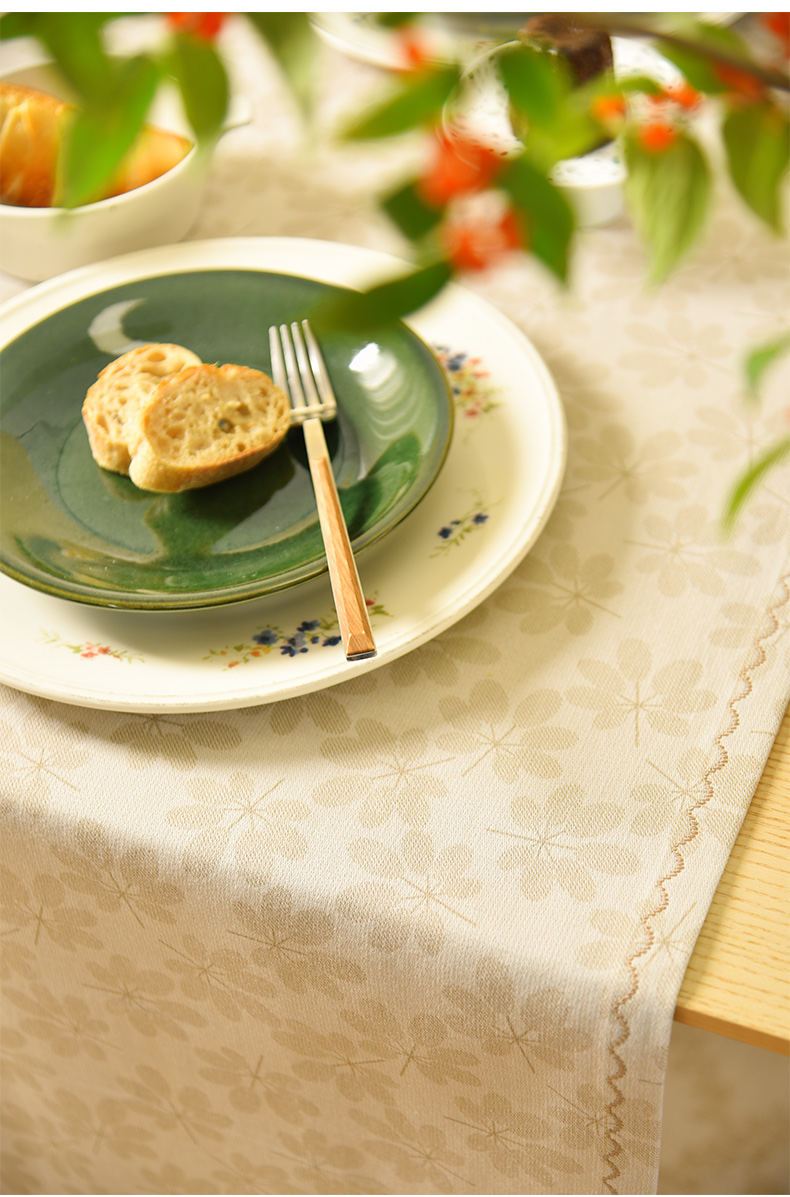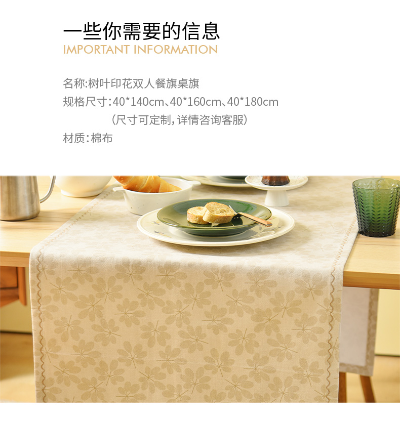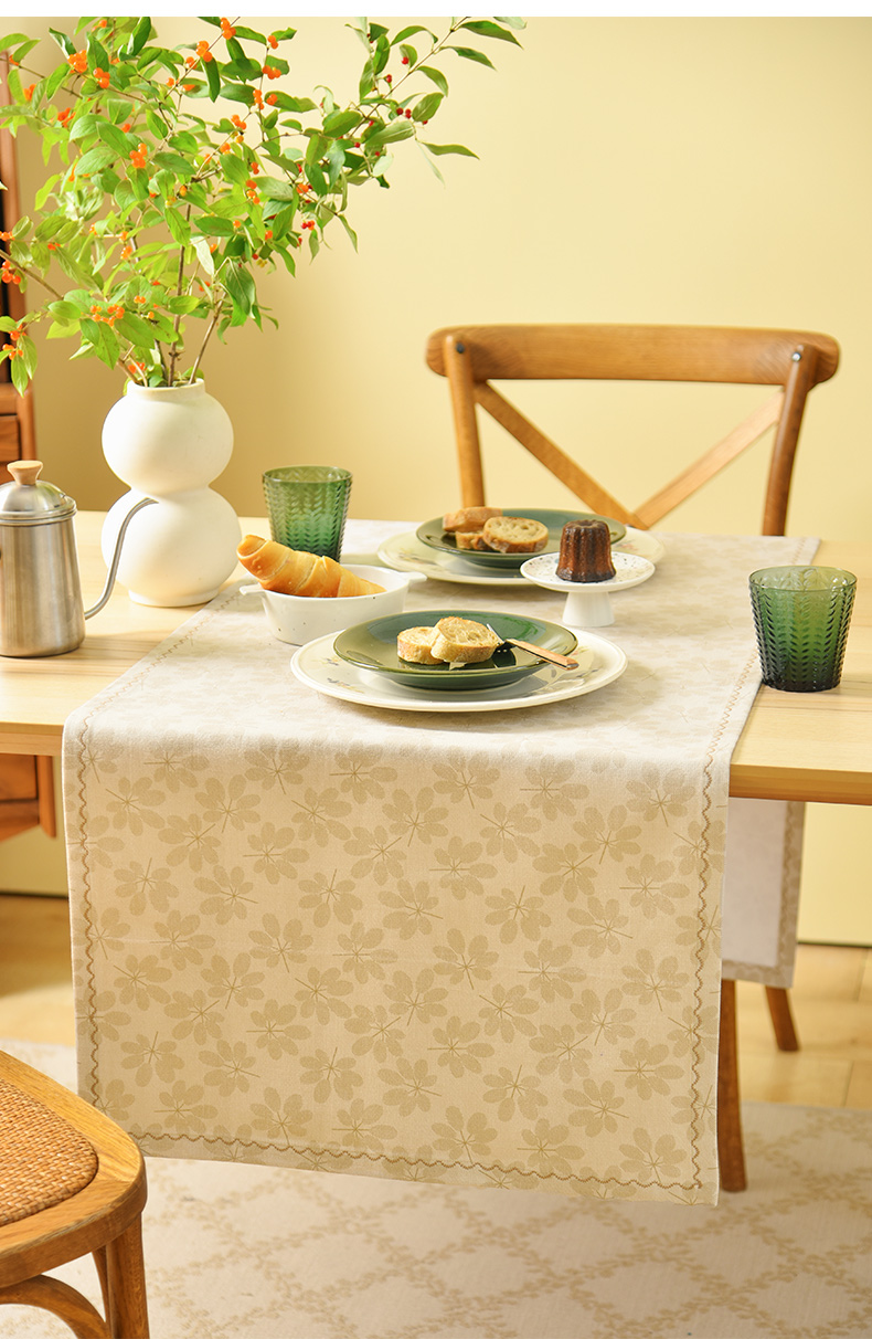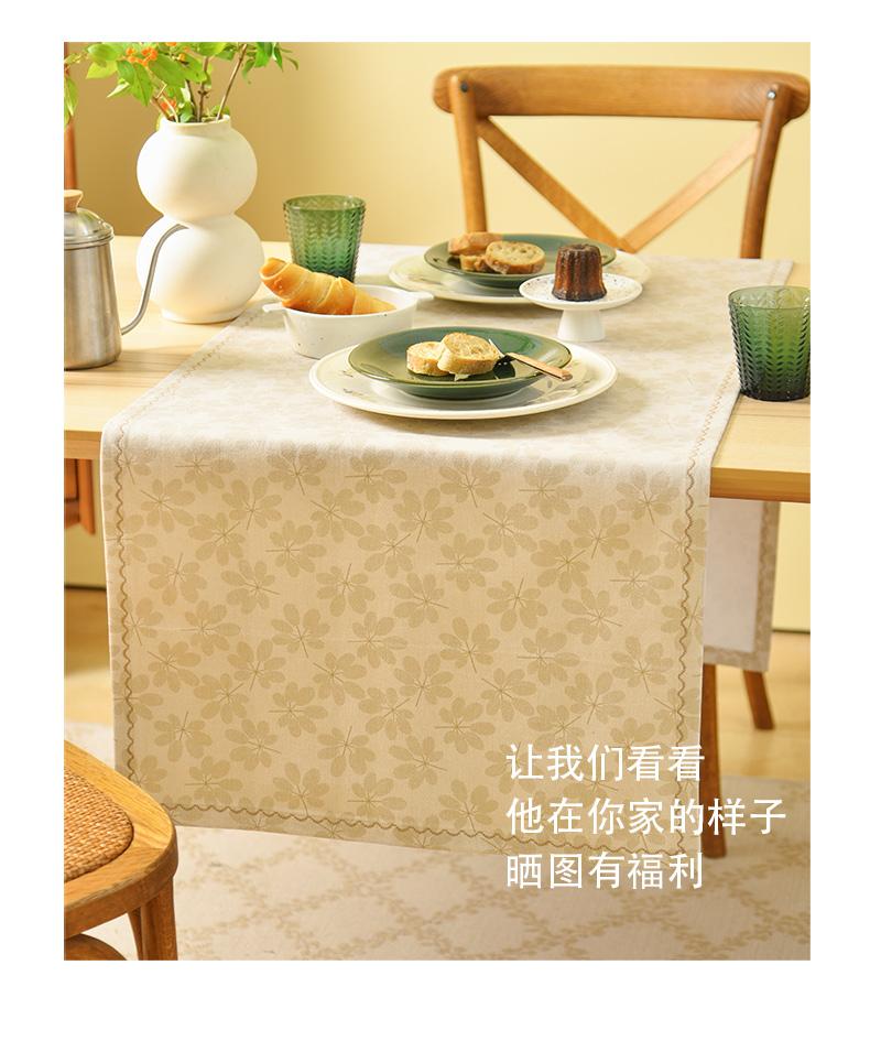 树叶印花双人餐旗桌旗轻奢田园高级感家用复古高档台布