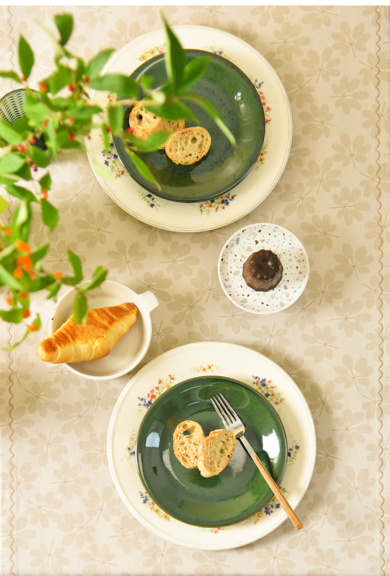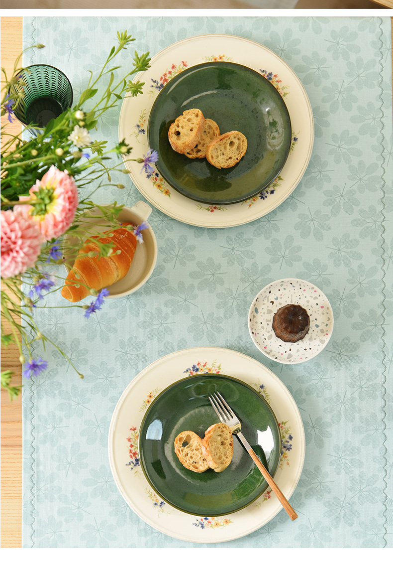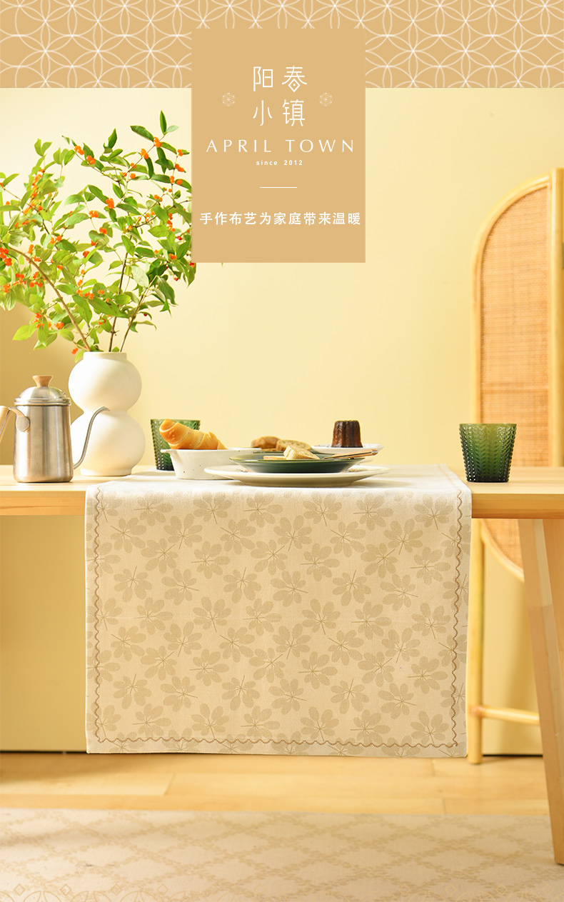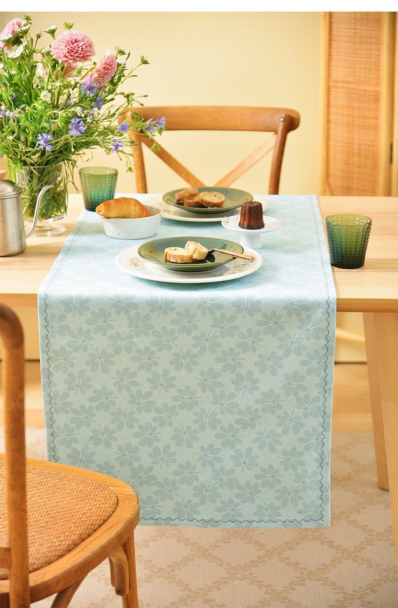 树叶印花双人餐旗桌旗轻奢田园高级感家用复古高档台布