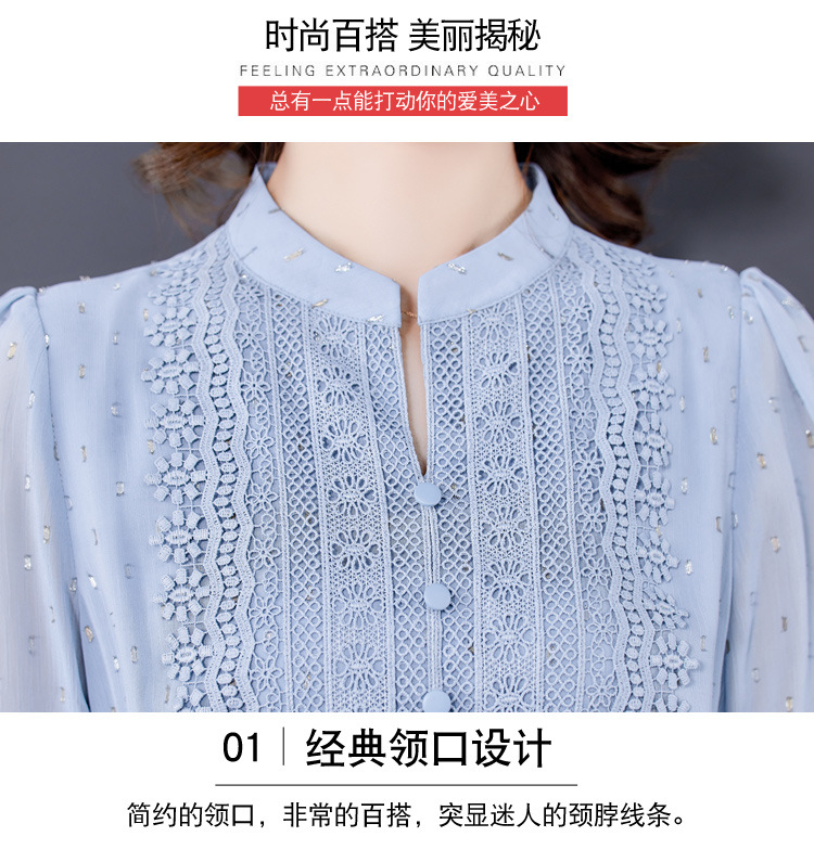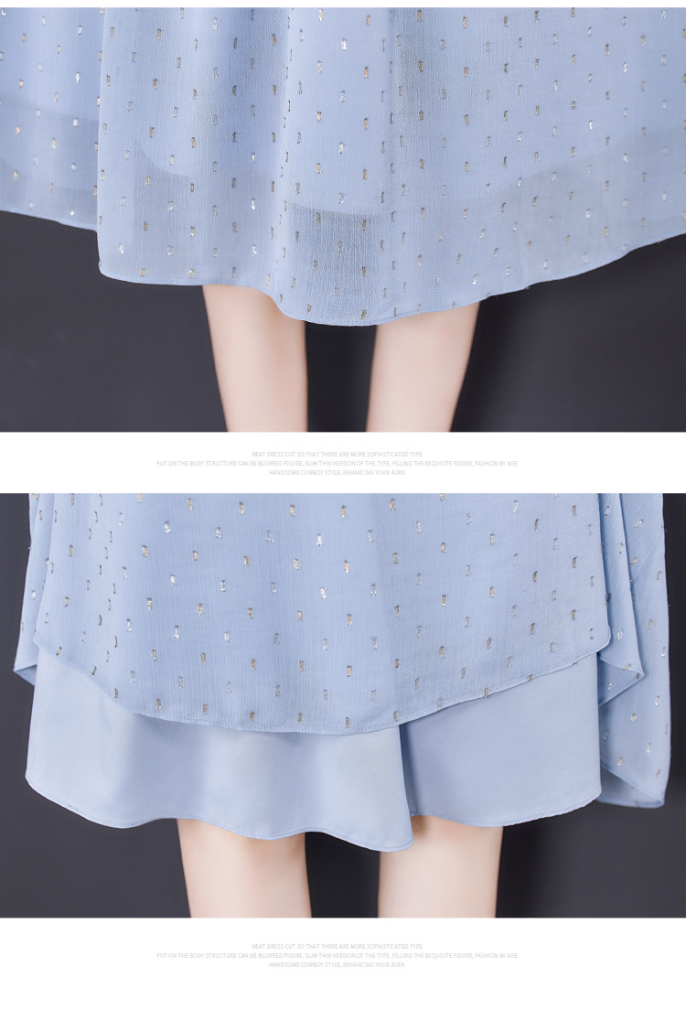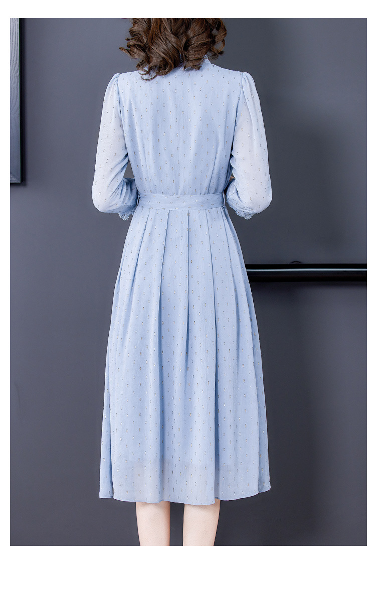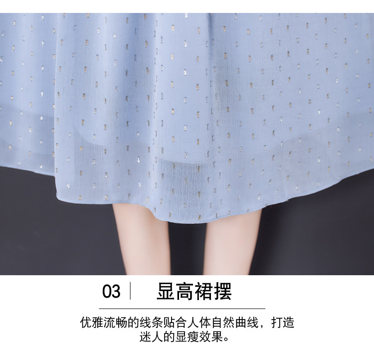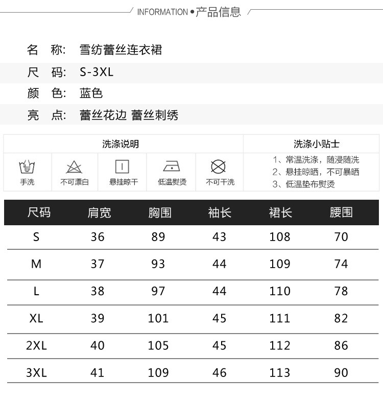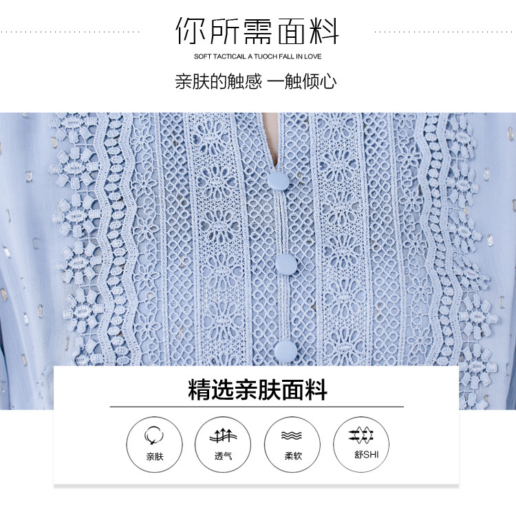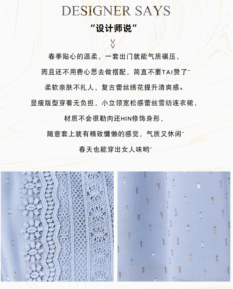 优雅百搭,显瘦过膝长款长裙蓝色雪纺蕾丝连衣裙HT-N-A11-323