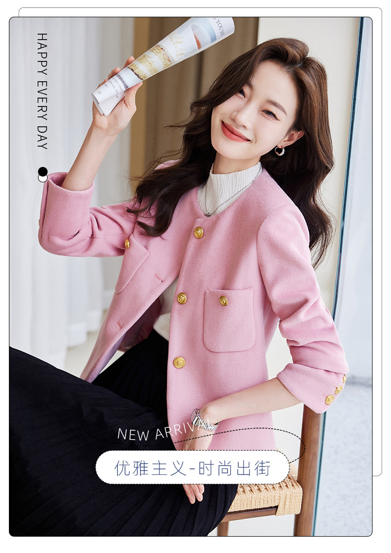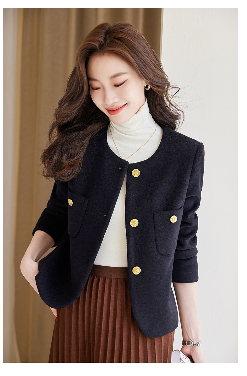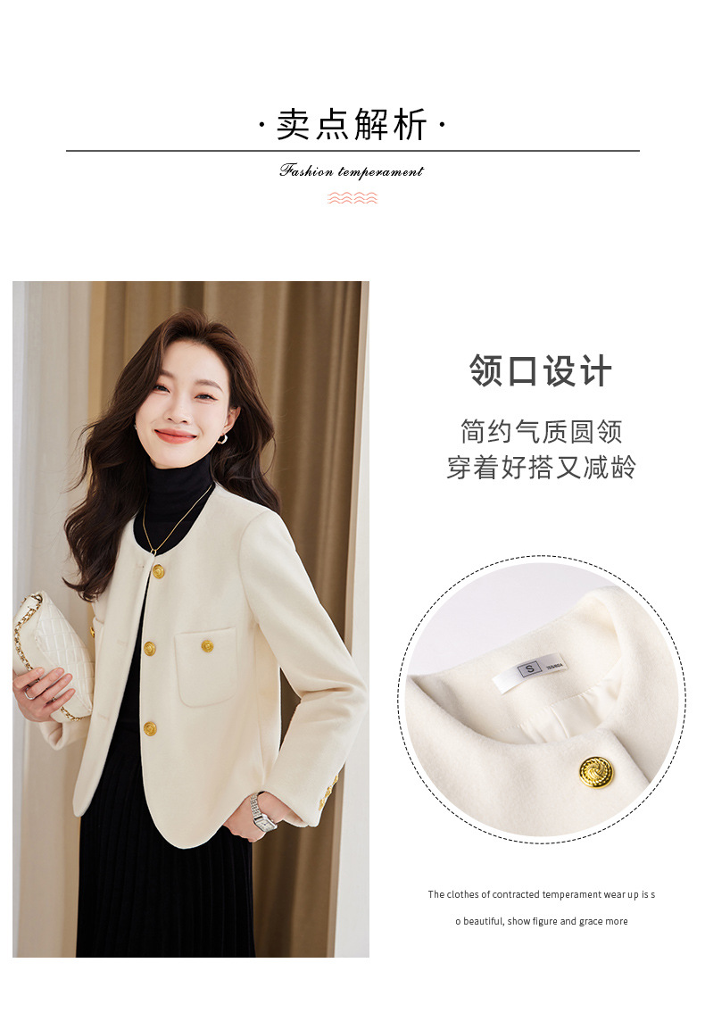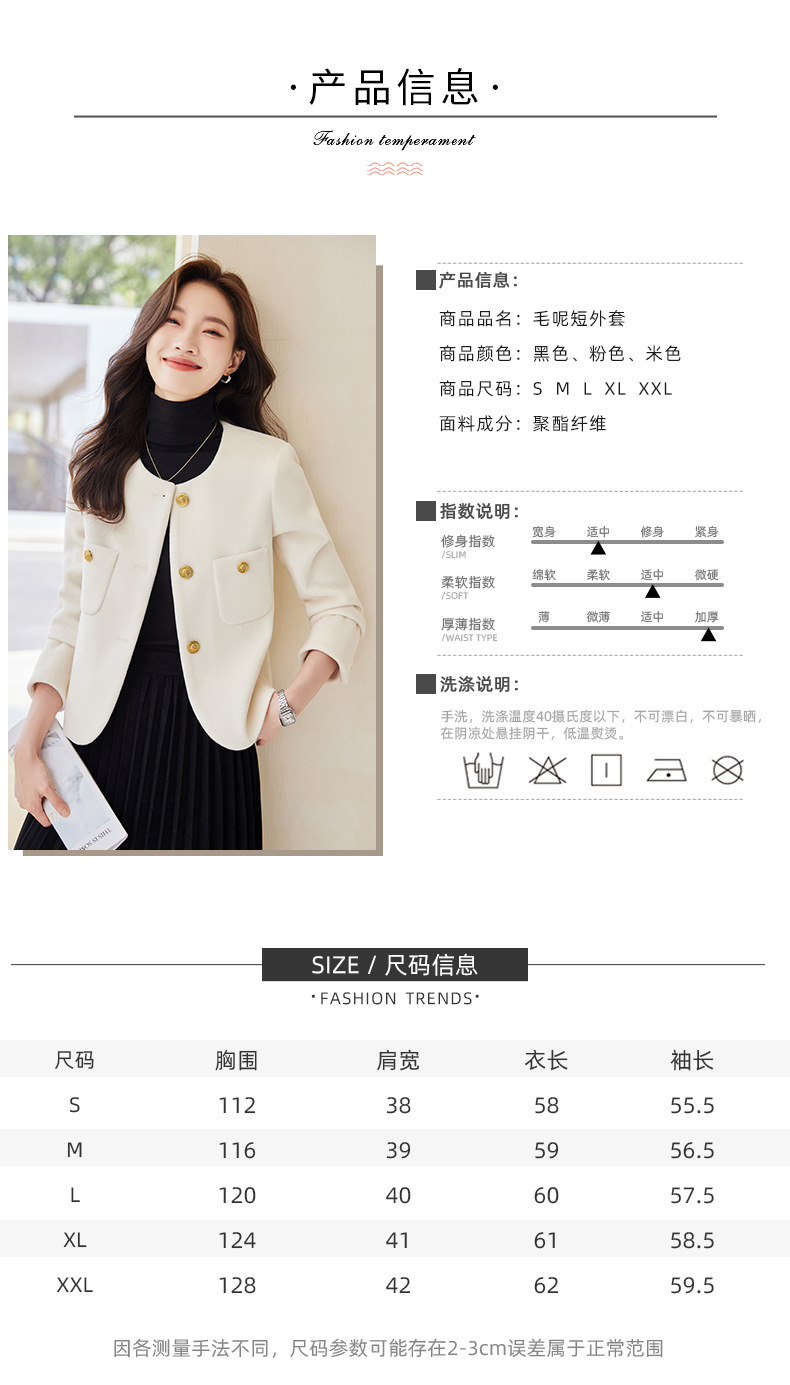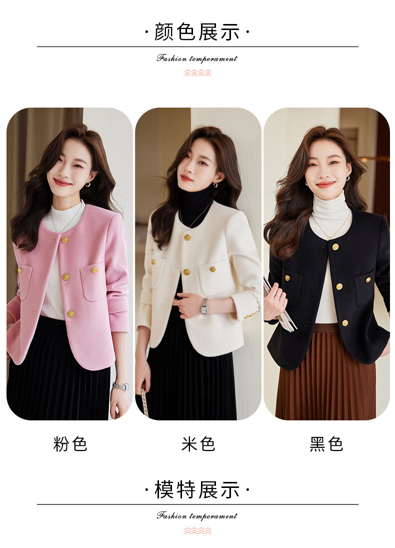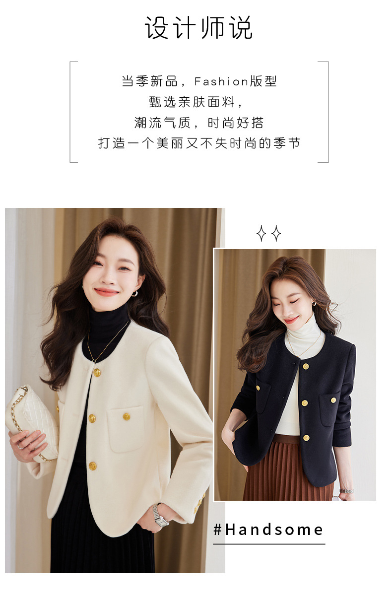 新款时尚圆领气质短外套单排扣毛呢外套HR-SSFB2801