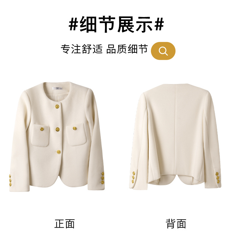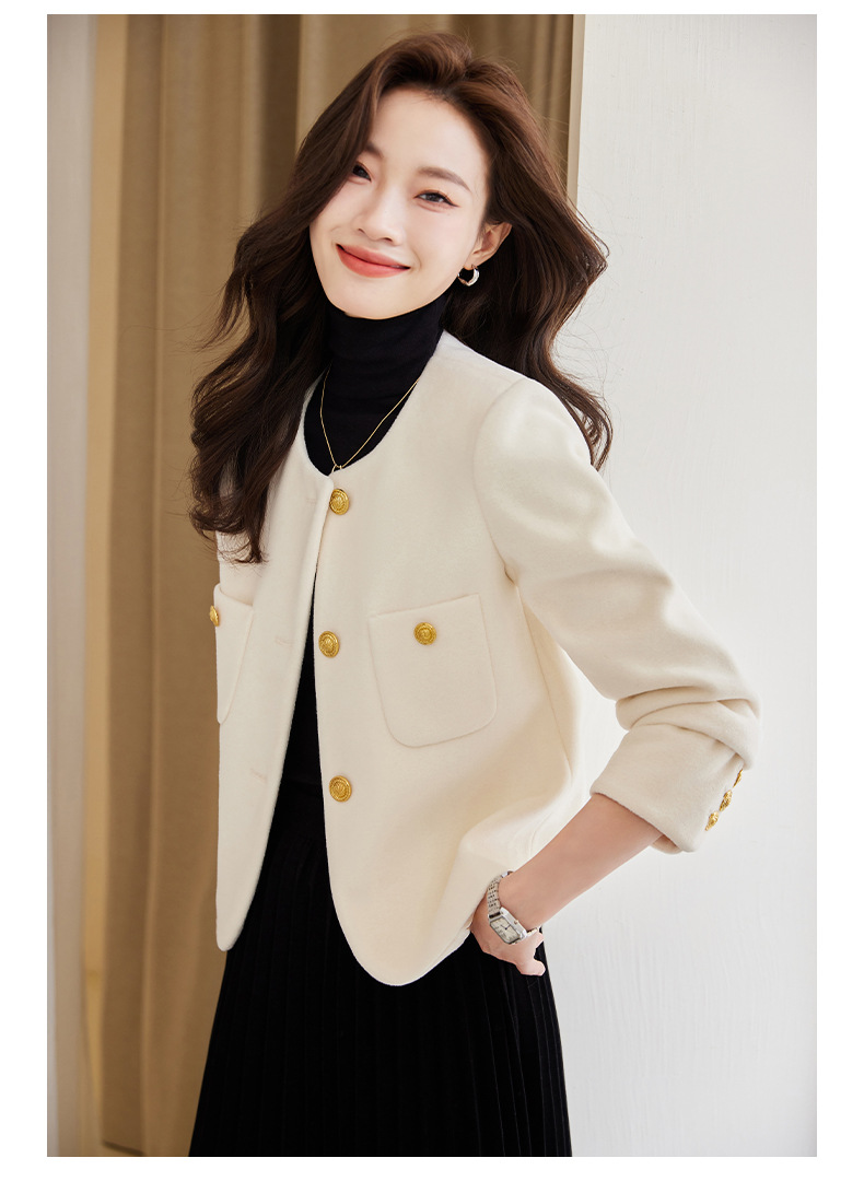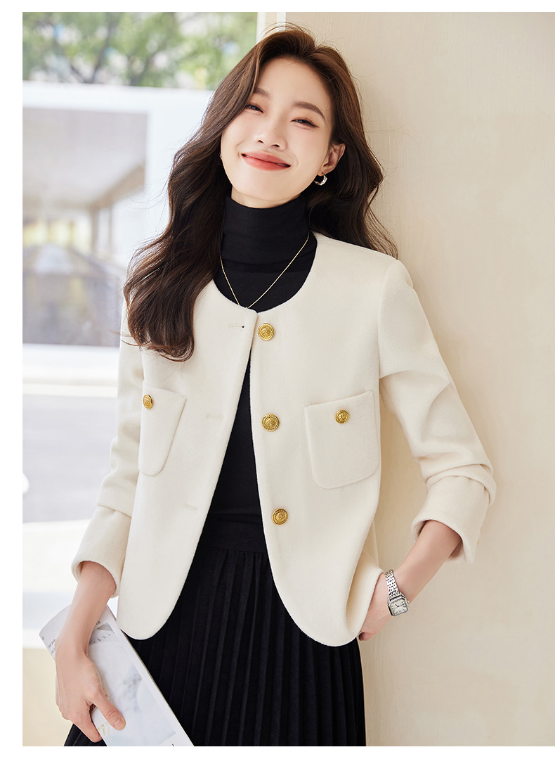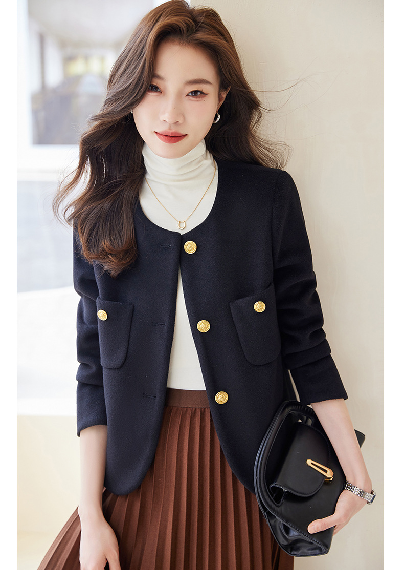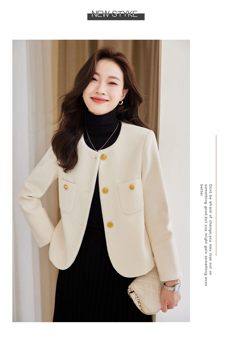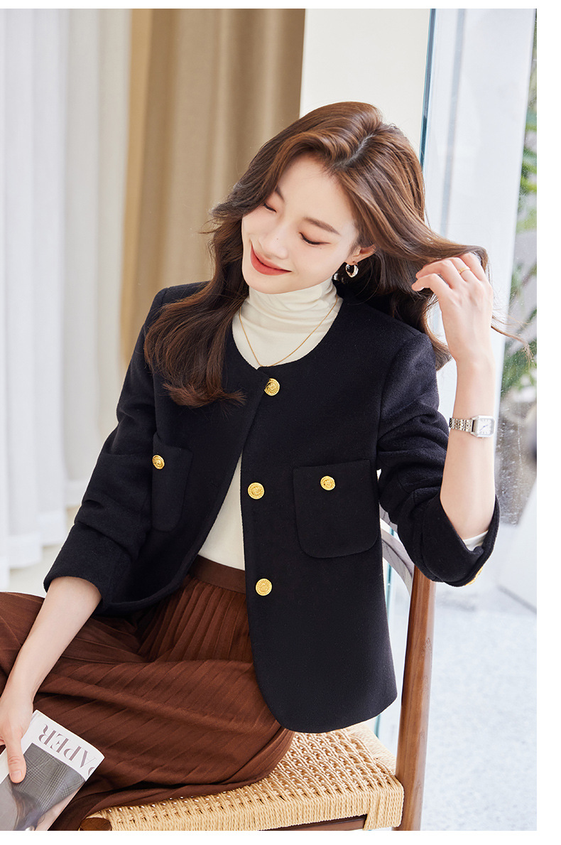 新款时尚圆领气质短外套单排扣毛呢外套HR-SSFB2801