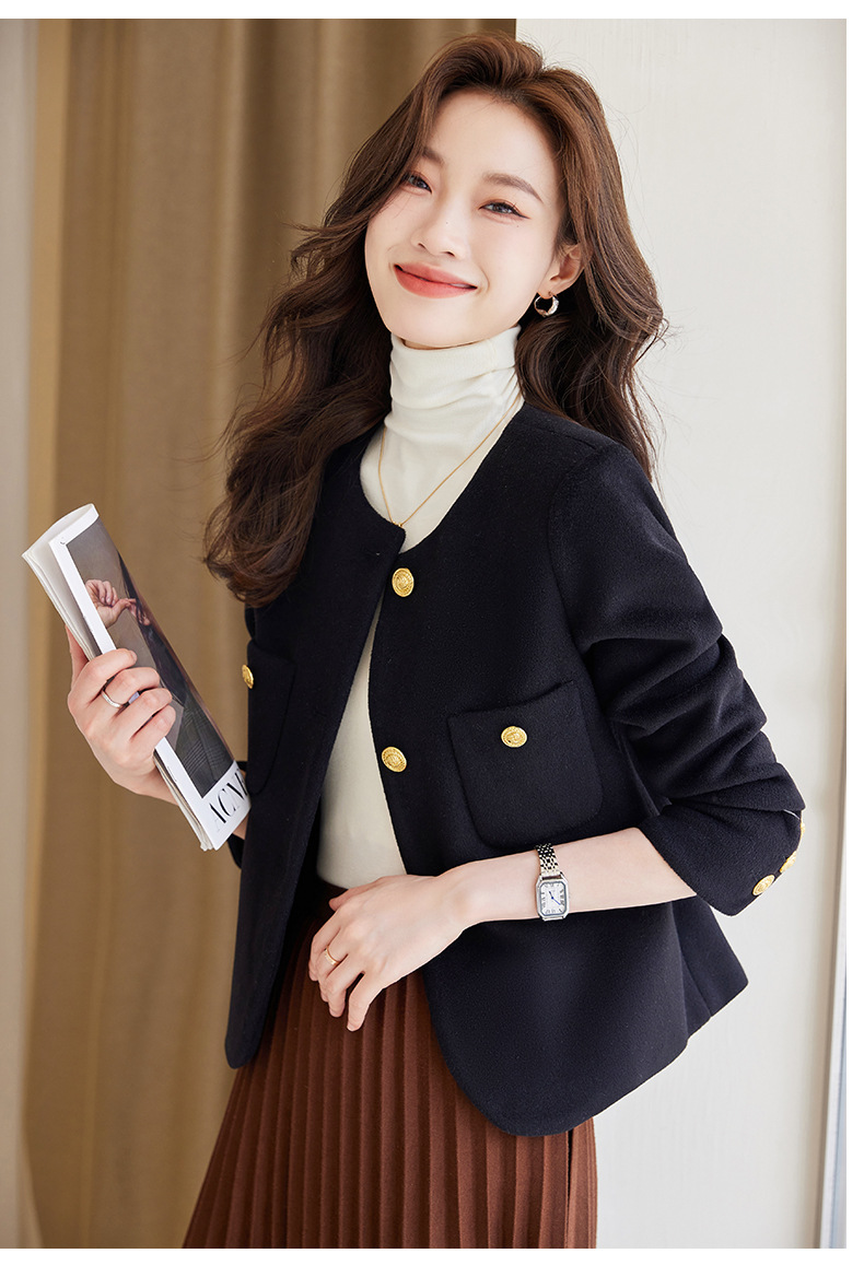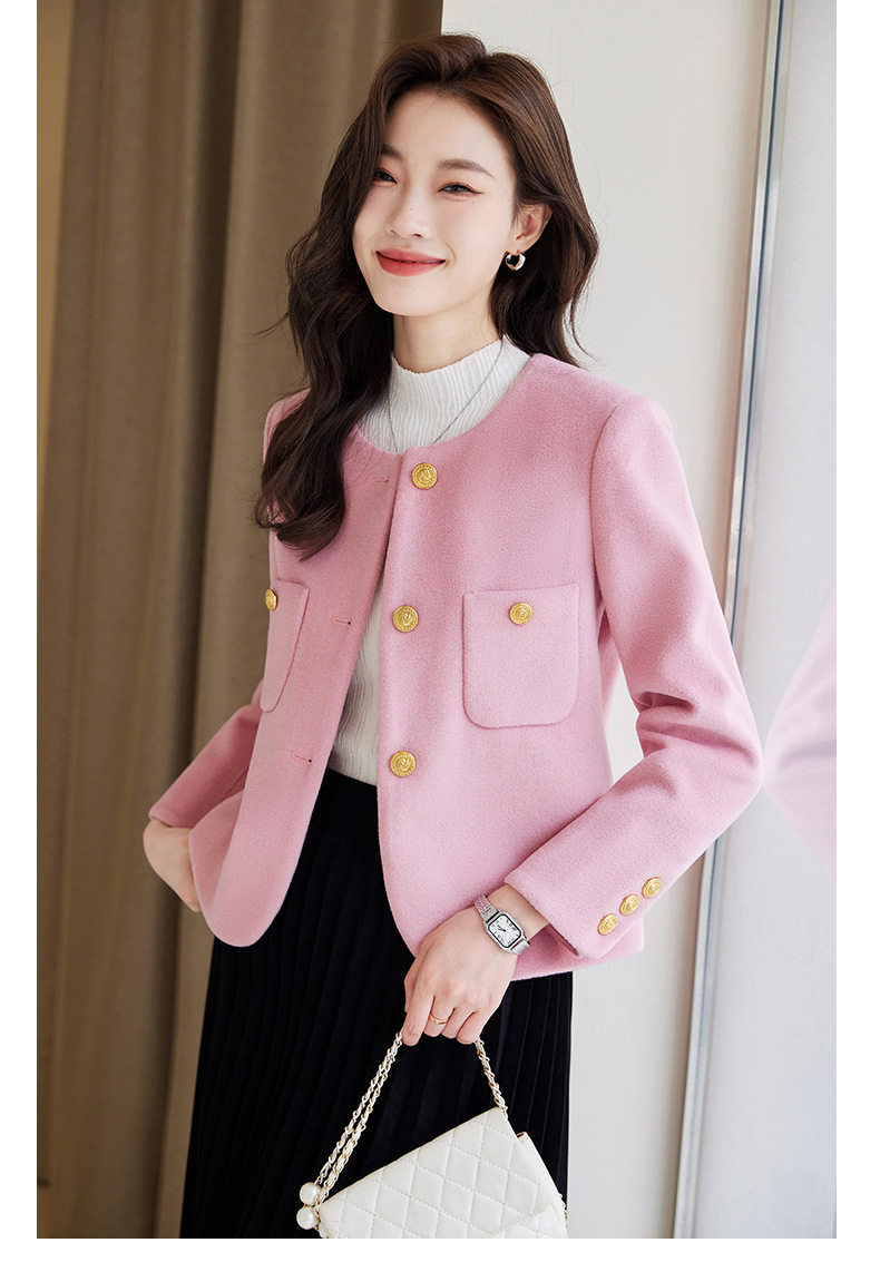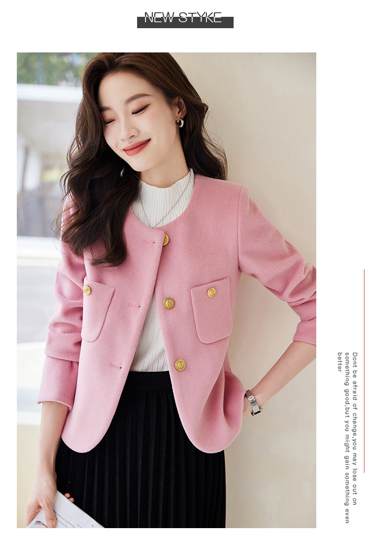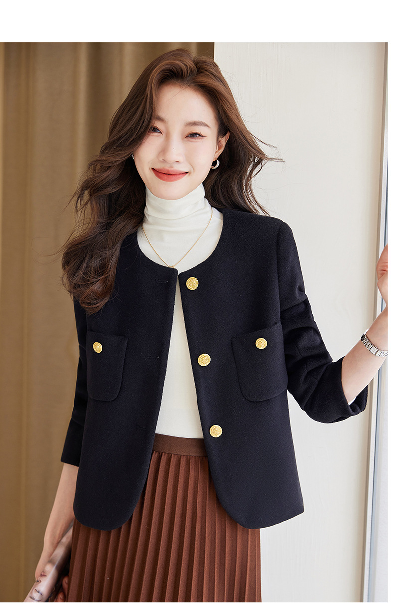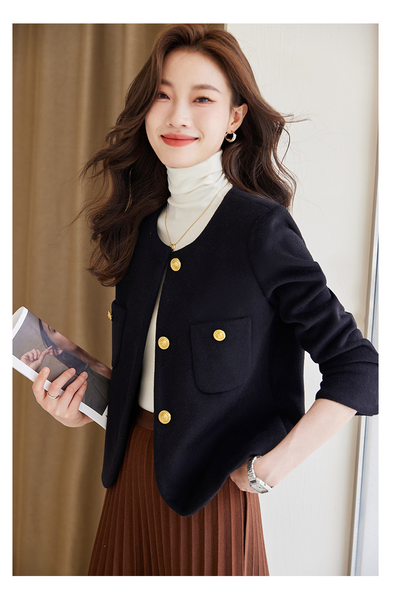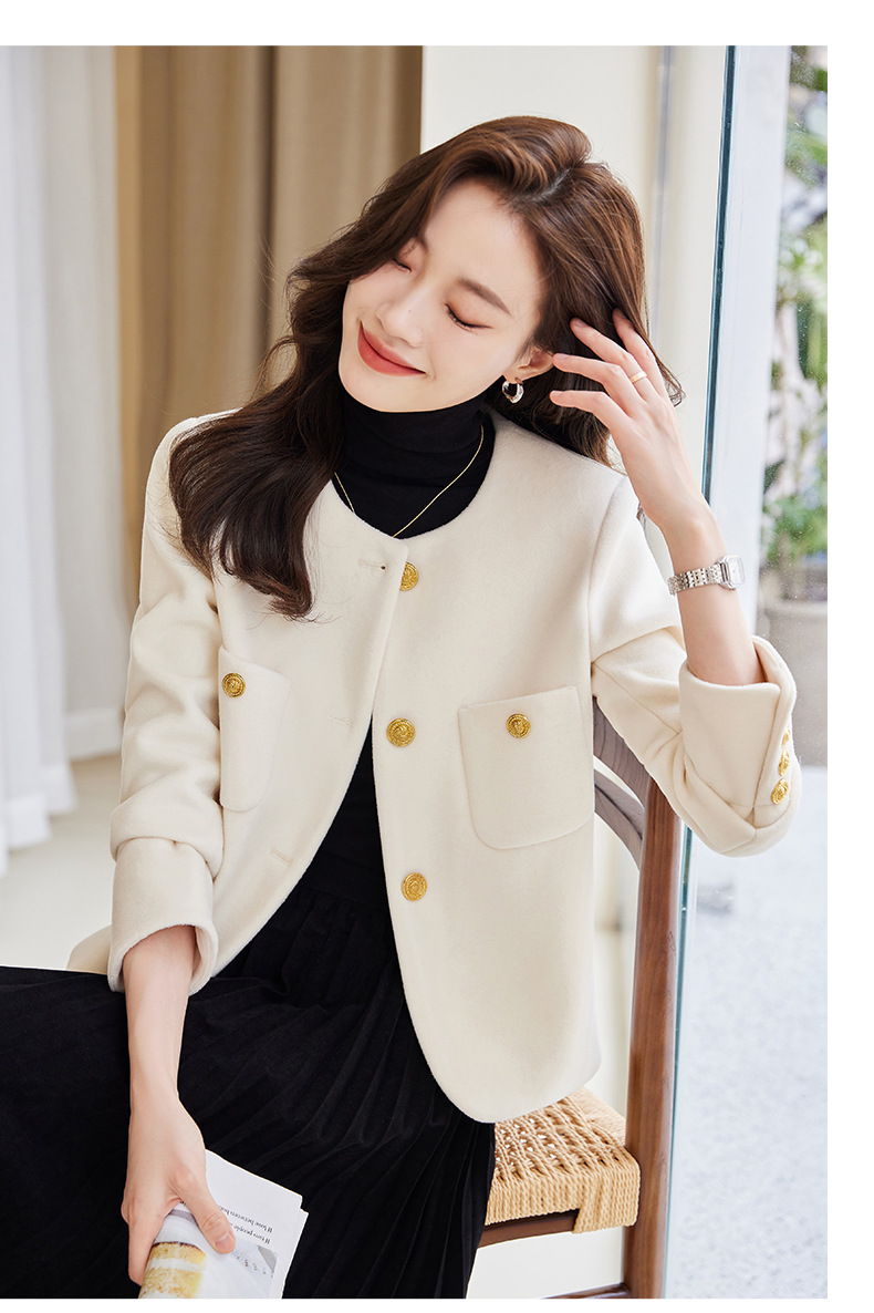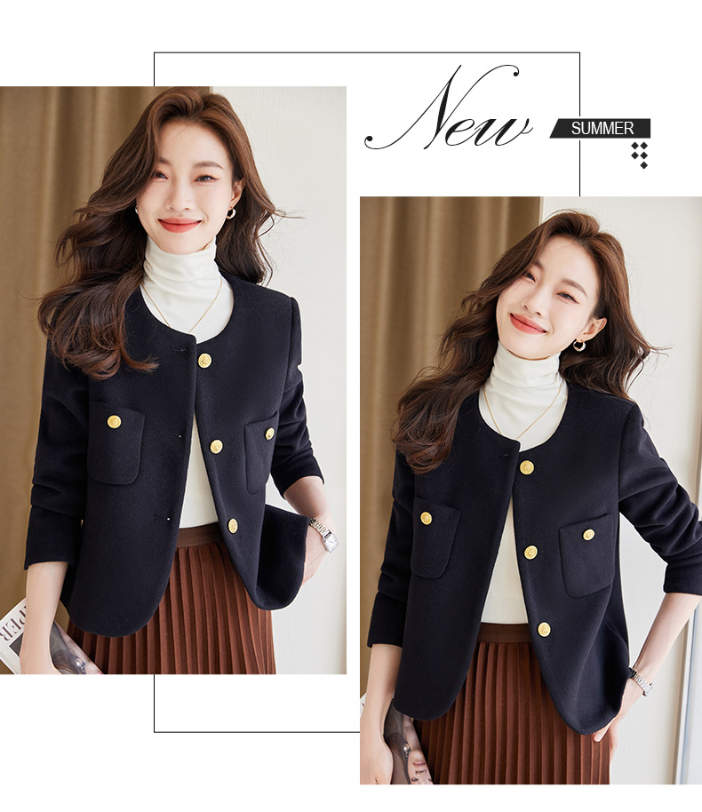 新款时尚圆领气质短外套单排扣毛呢外套HR-SSFB2801