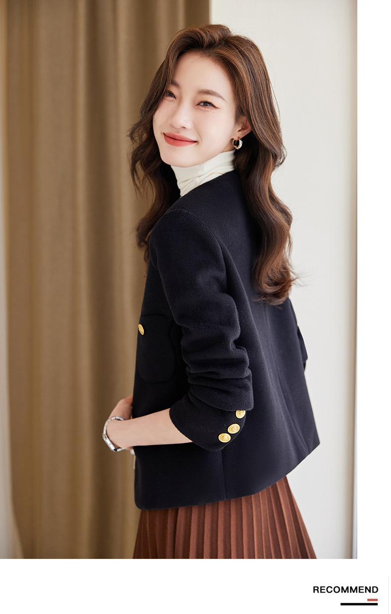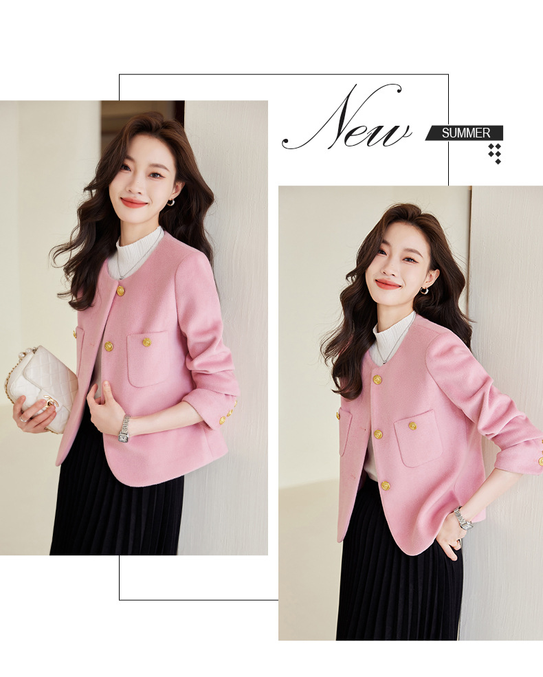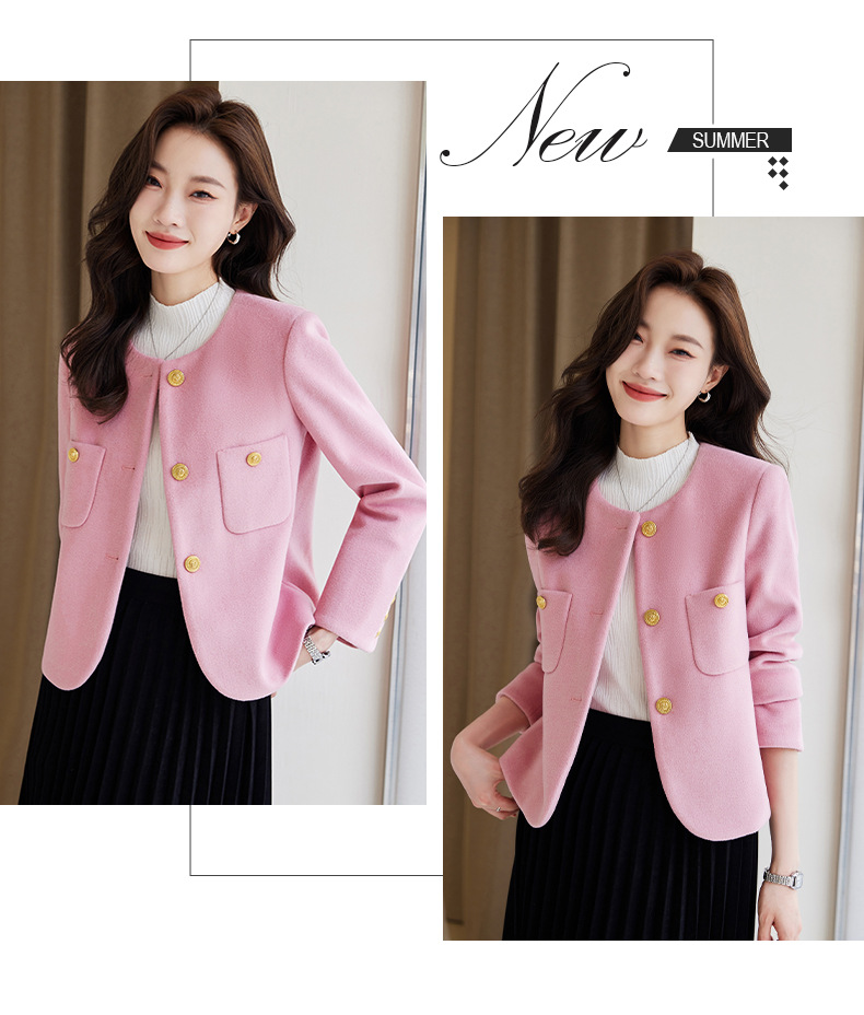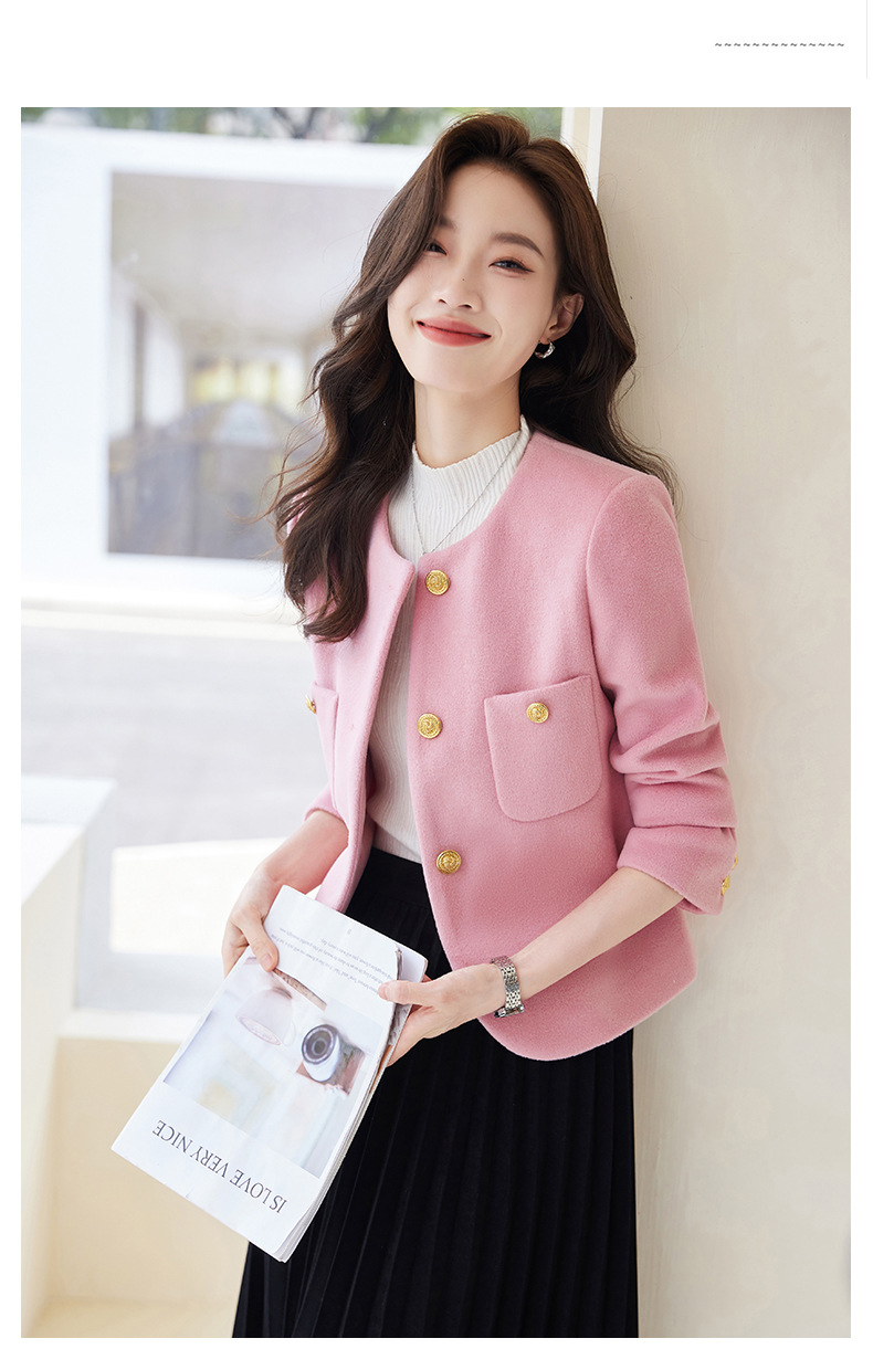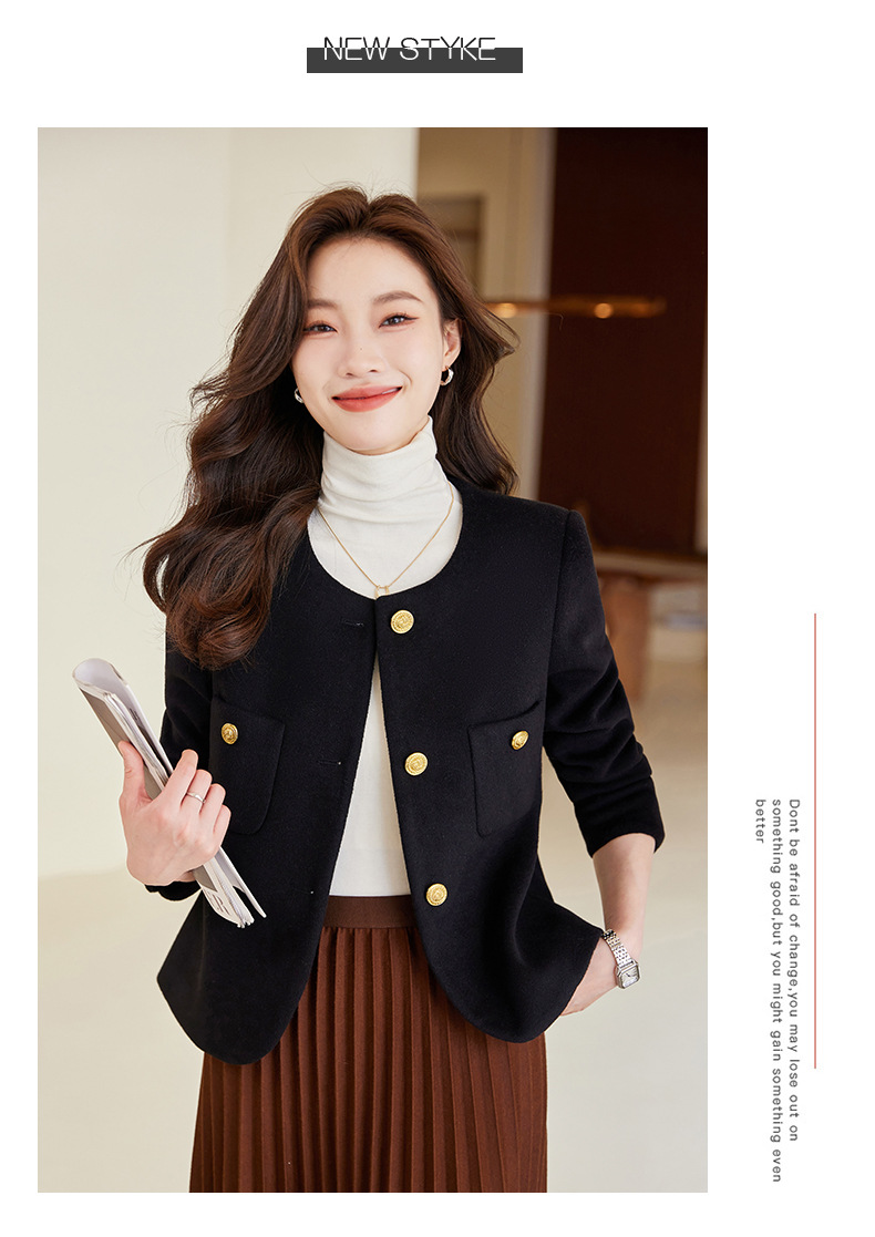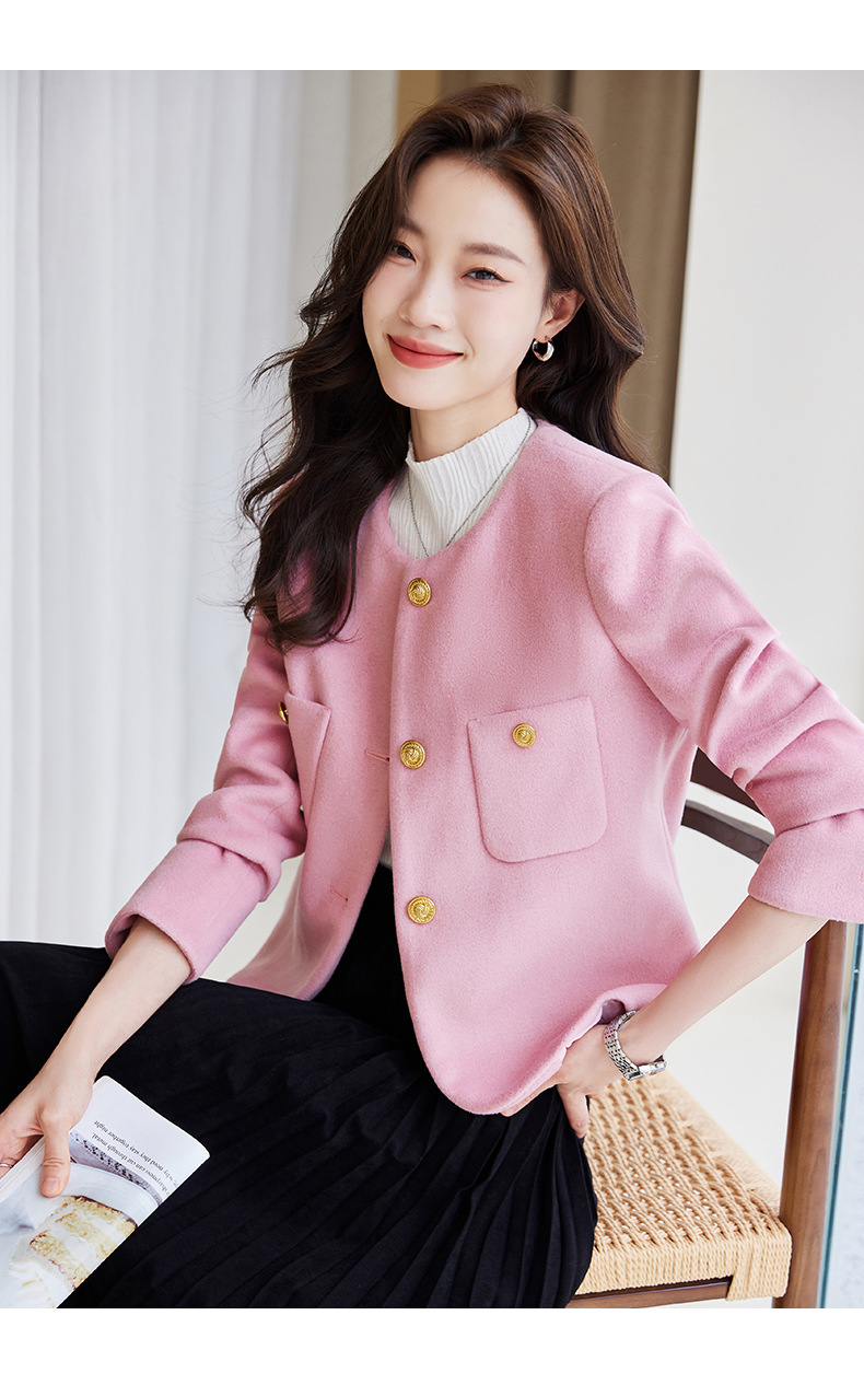 新款时尚圆领气质短外套单排扣毛呢外套HR-SSFB2801