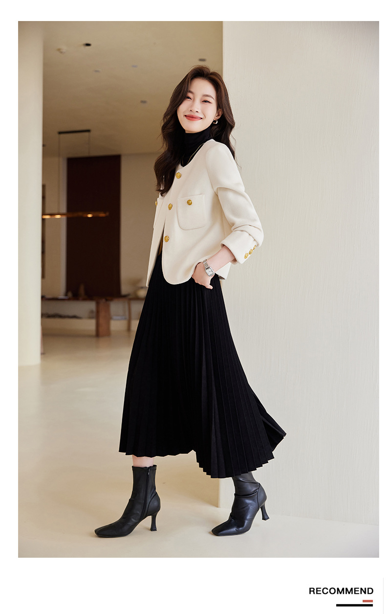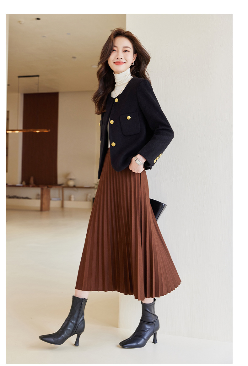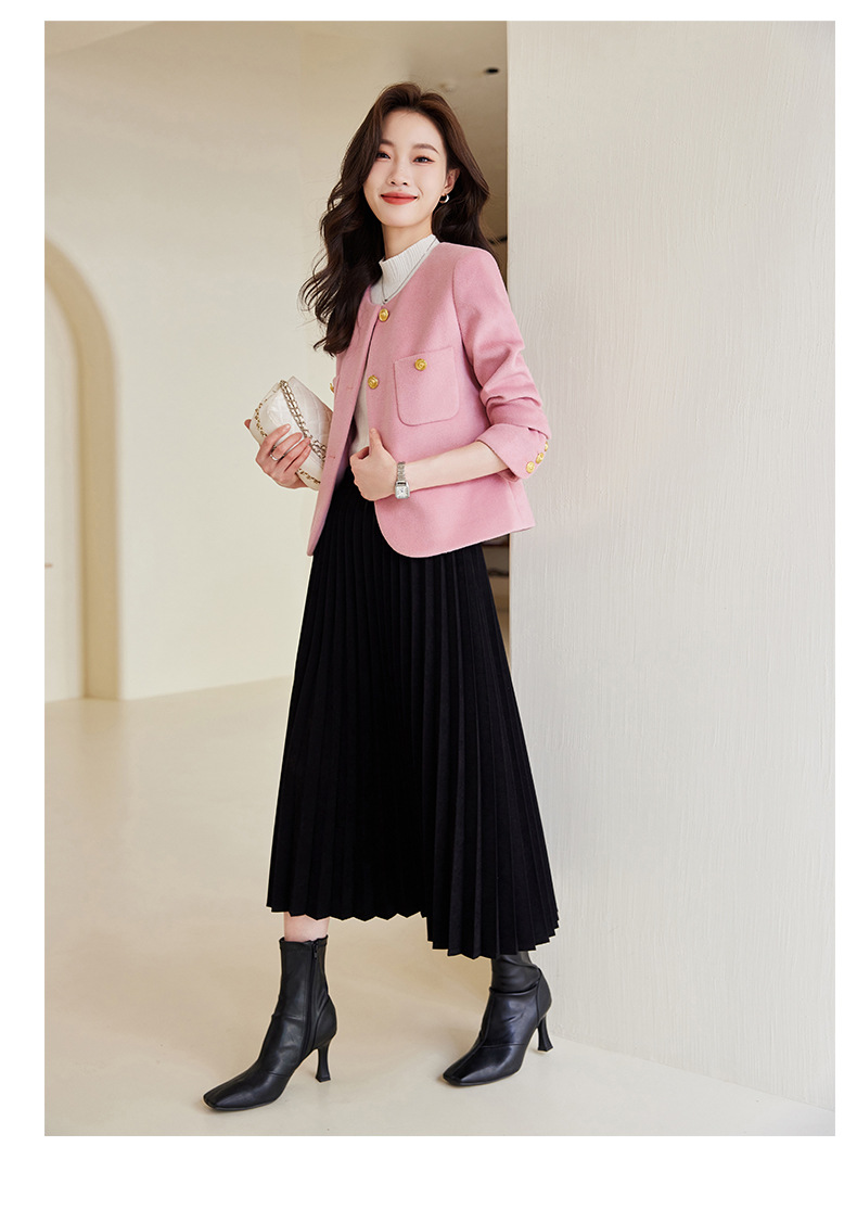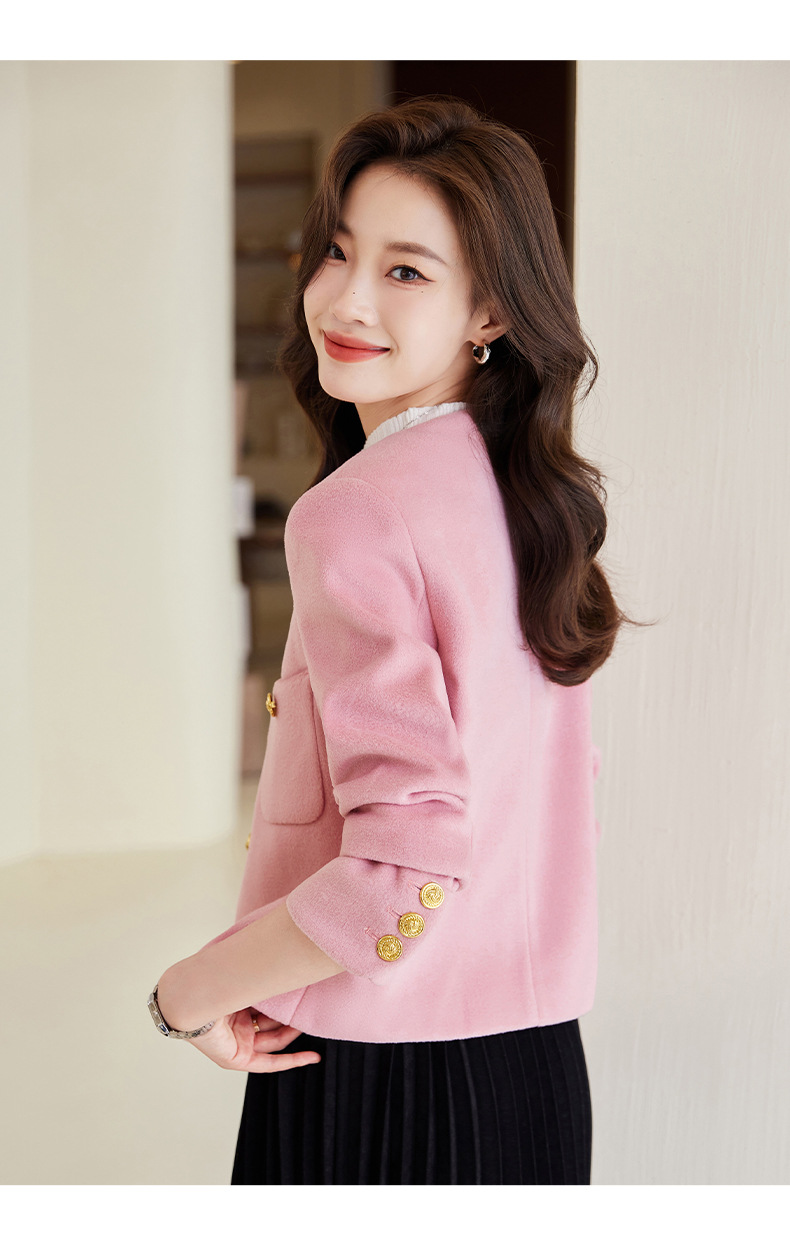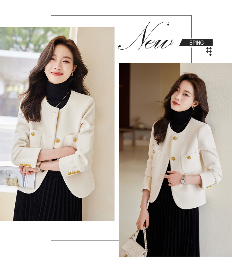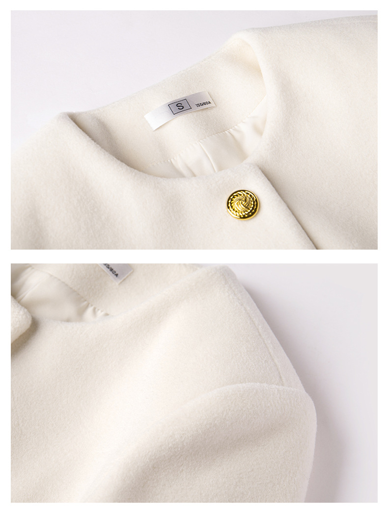 新款时尚圆领气质短外套单排扣毛呢外套HR-SSFB2801
