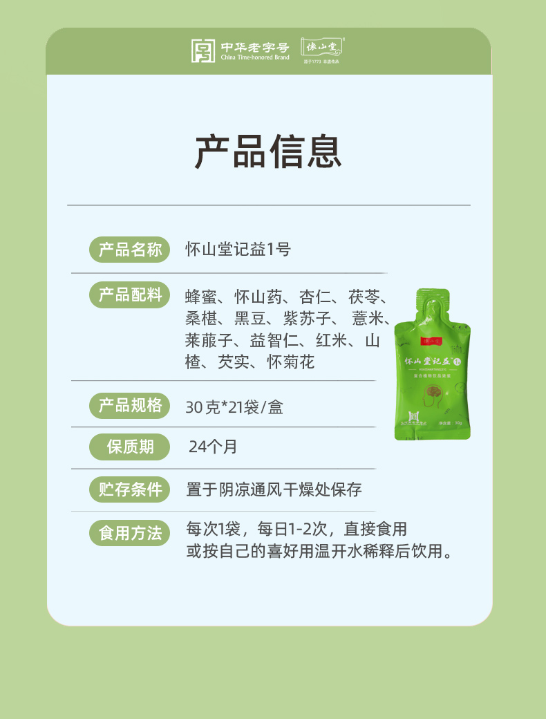 怀山堂 记益1号复合植物饮品浓浆630g袋装盒装全生命周期铁棍山药制品
