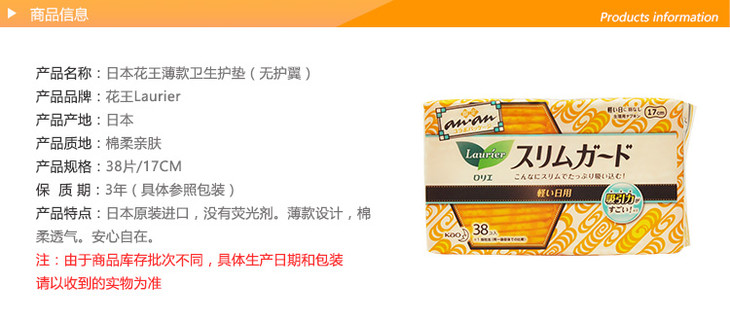【保税仓】日本花王乐而雅 卫生巾17cm*38片