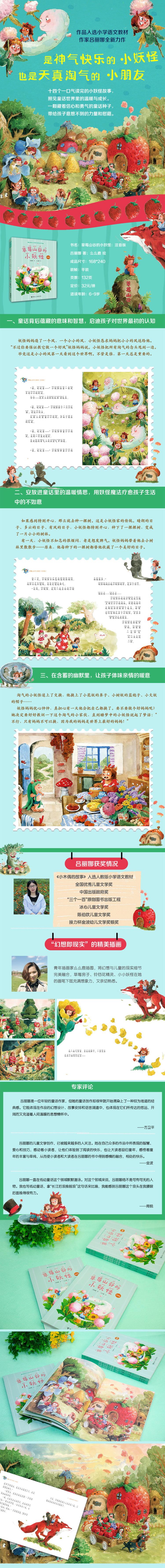 草莓山谷里,住着一个快乐的小妖怪。他既是个神气的小妖怪,也是个淘气的小朋友。他天真,好奇,贪玩,充满活力,有一颗温暖的心,对周围世界里的一切很友好、充满善意。他的快乐就像阳光一样,照亮了整个草莓山谷。14个短小的小妖怪故事,蕴藏着意味和智慧,启迪孩子对世界初的认知;安放进童话里的温暖情思,疗愈孩子生活中的不开心;也在含蓄的幽默里,让孩子体味亲情的温暖。