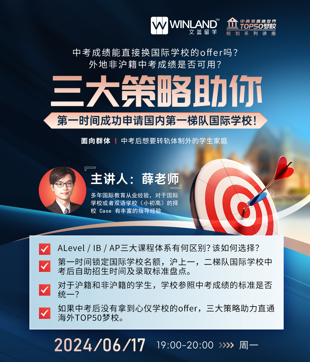 【中高考直通世界TOP50梦校 规划系列讲座】中考成绩能直接换国际学校的offer吗?外地非沪籍中考成绩是否可用?