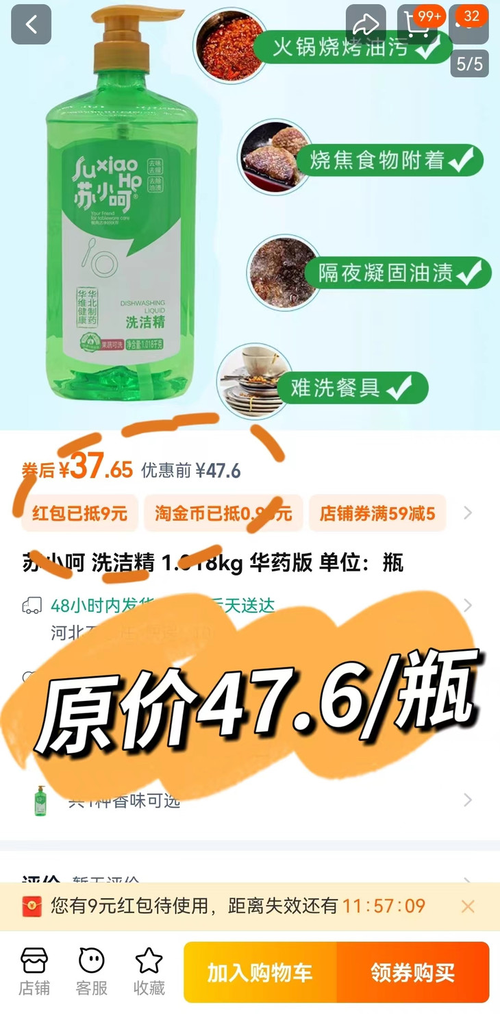 团长最后总结一下, 做电商这么长时间,电商产品层出不穷, 有些厂家为了卷低价不断的降低产品质量, 我自己也在线上购物,有一些东西确实很实惠, 但是像洗洁精这种每天和我全家入口有关的产品, 哪怕贵一点我也坚决选择品牌和品质, 今天给大家推的这款洗洁精我自己也果断入了, 就冲华北制药的品牌和它的双国标品质,而且今天开团也是真实惠!