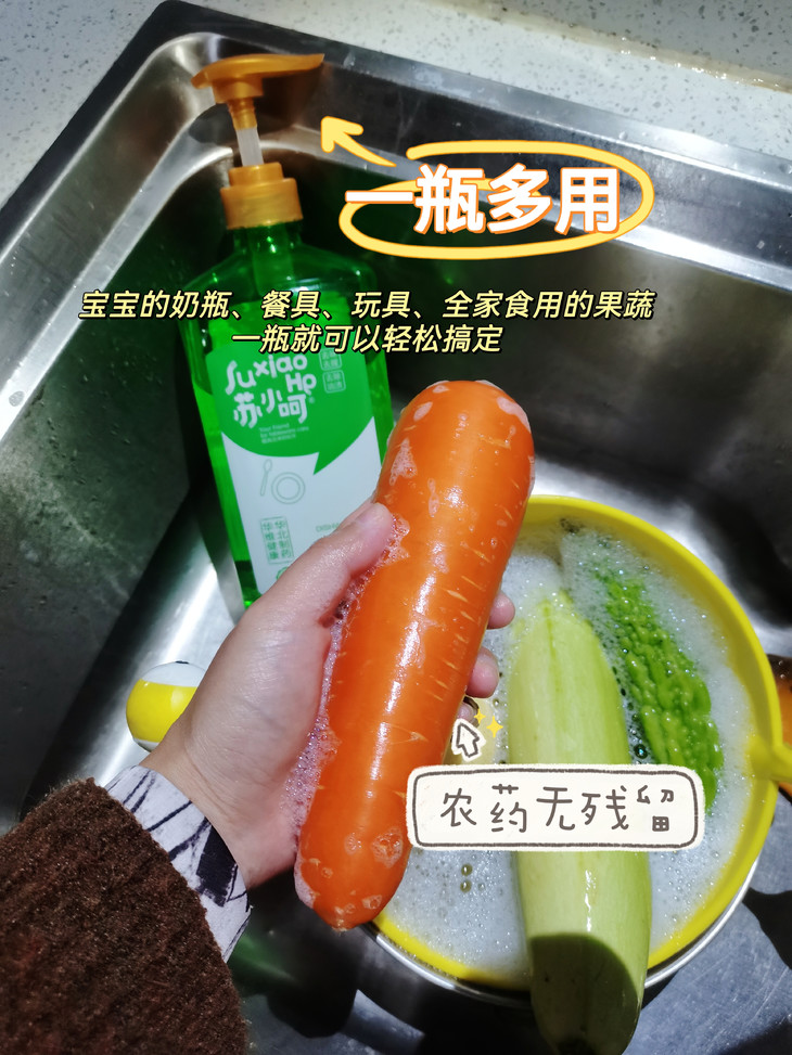 还能用来清洗果蔬表面的农残🍇 对果胶果蜡的溶解效果也是很好的 直接和果蜡果霜说byebye~ 宝宝的奶瓶🍼也可以用 从源头上保障家人的饮食安全, 吃得干净,才是真的安心~ ✖无磷配方,温和环保 ✖无有害化学成分添加,孕婴可用