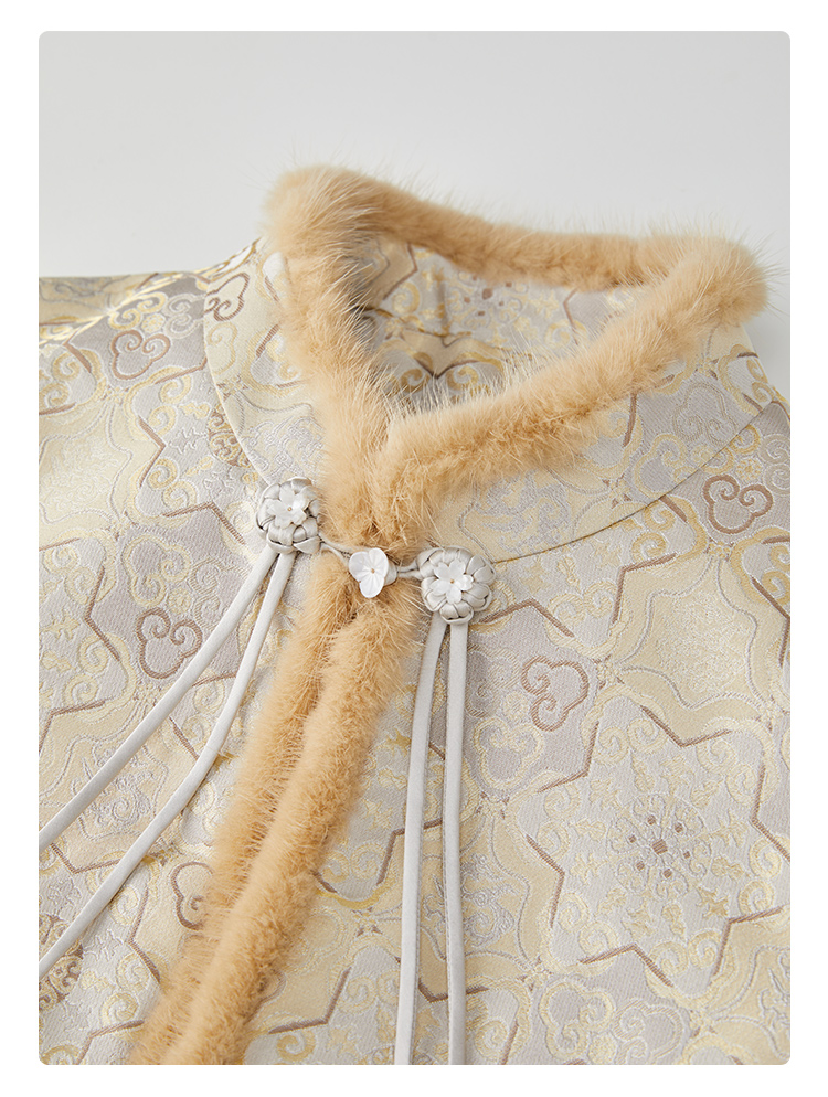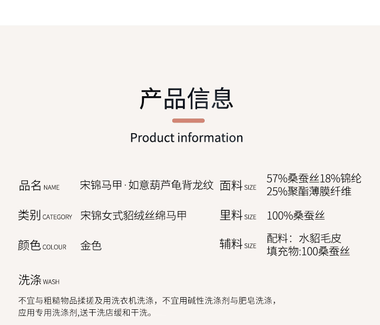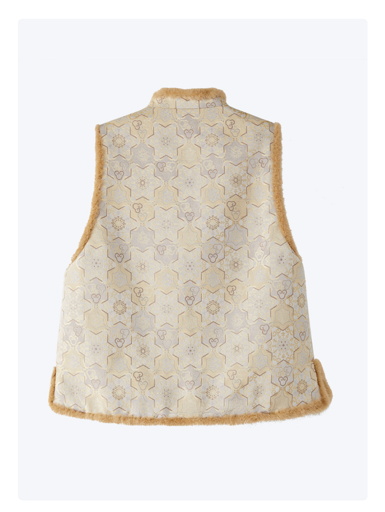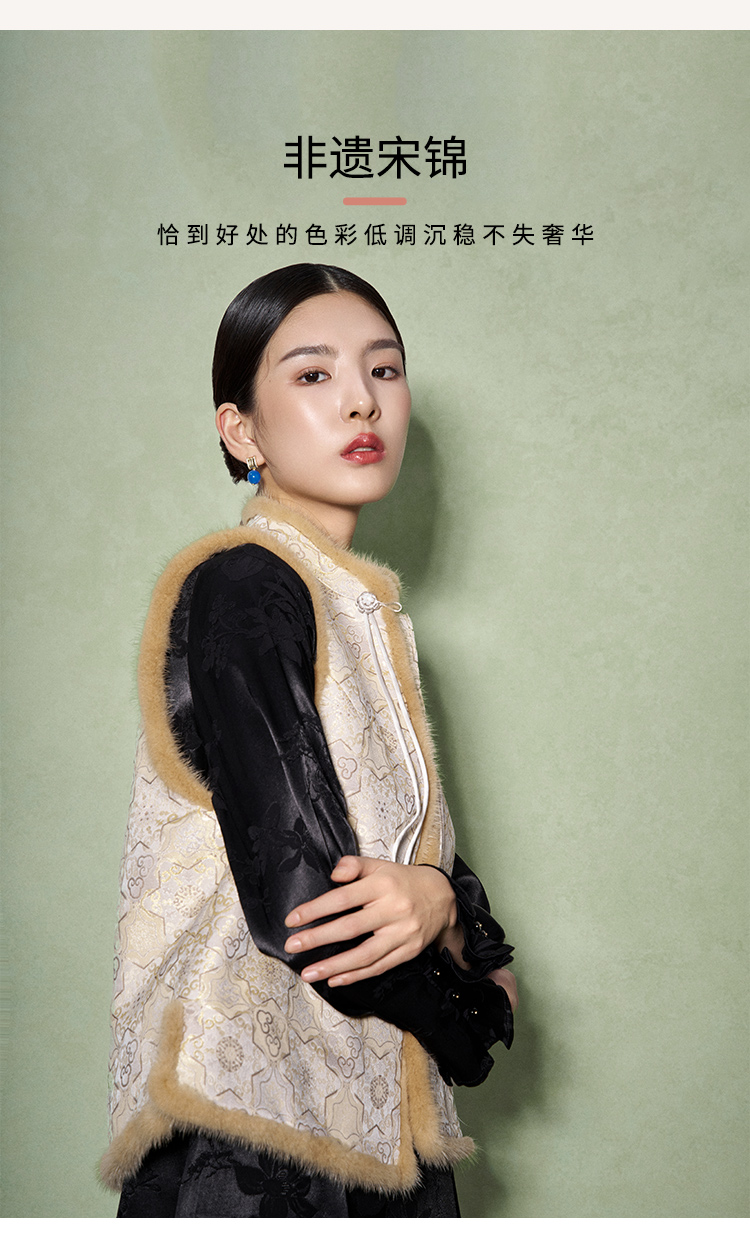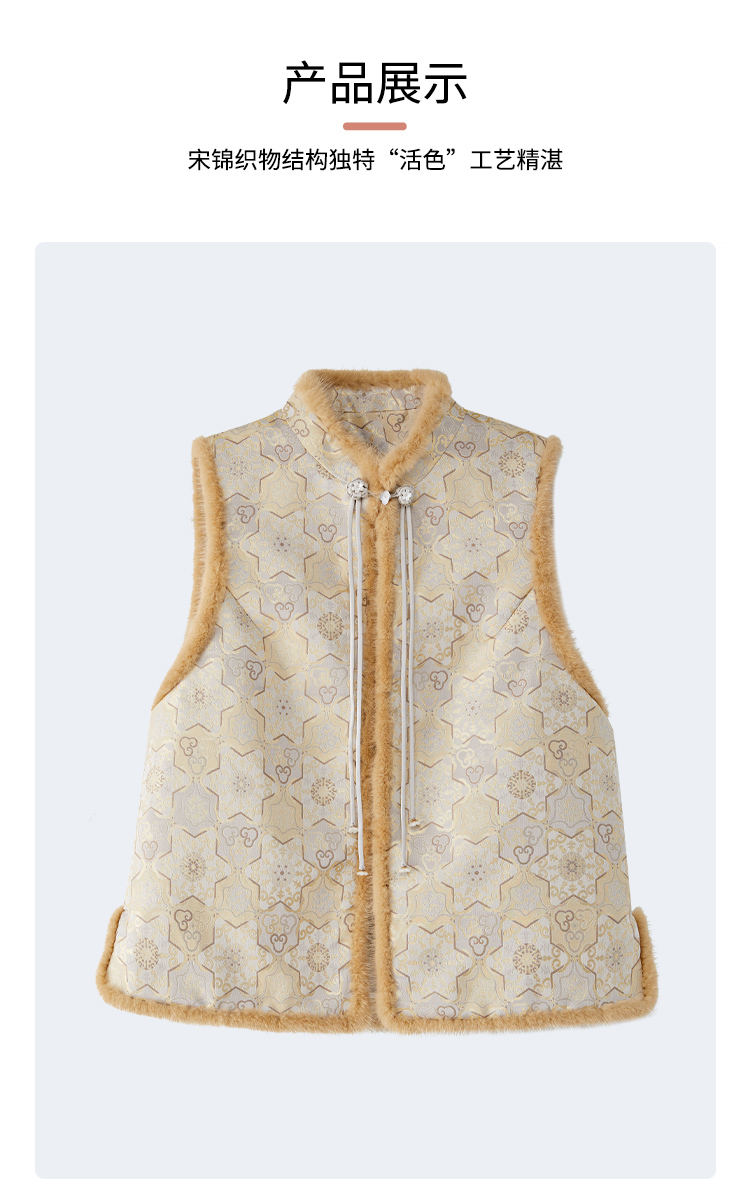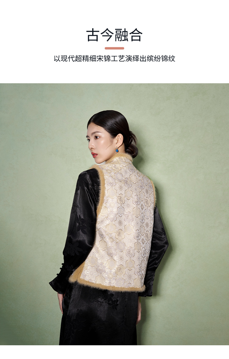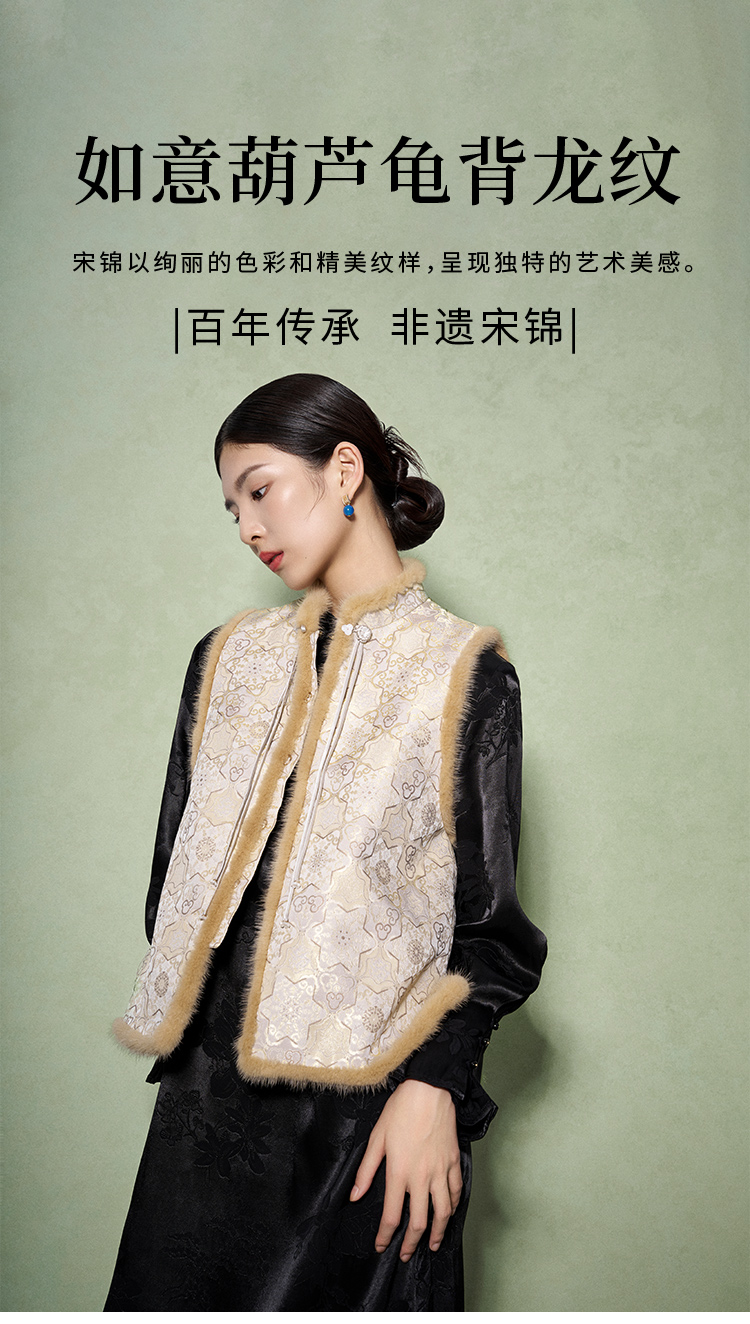 SAINTJOY/上久楷 女式宋锦貂绒丝棉马甲 中式上衣 中国风 复古 如意葫芦龟背龙纹 CY1044207002