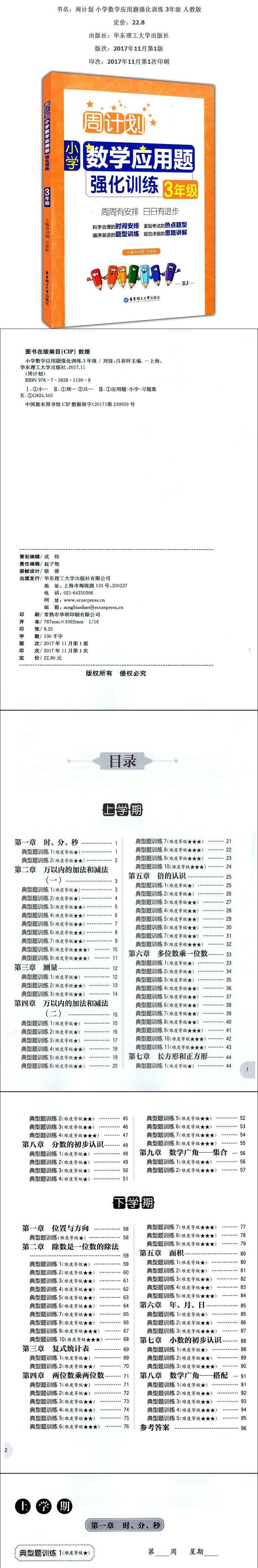 正版现货 周计划 小学数学应周计划小学数学应用题强化训练3年级/三年级 华东理工大学出版社
