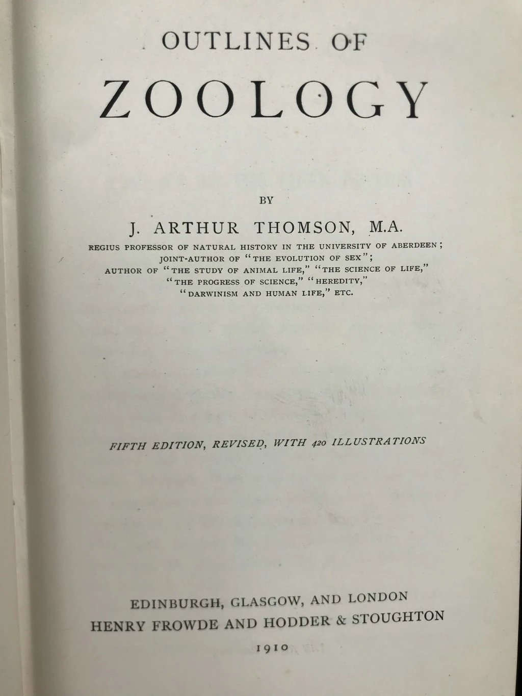 1910年 动物学纲要 420幅插图 漆布精装32开