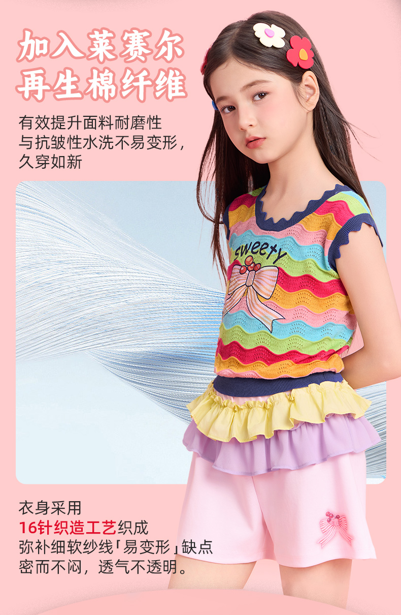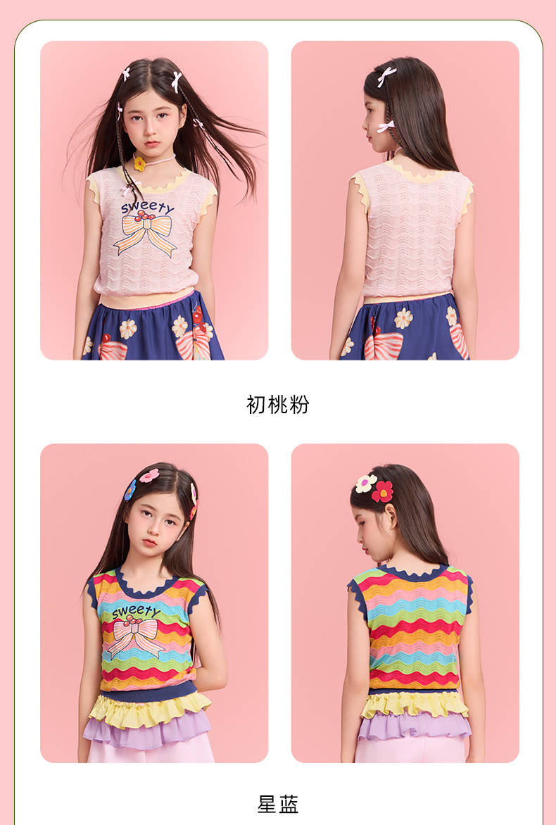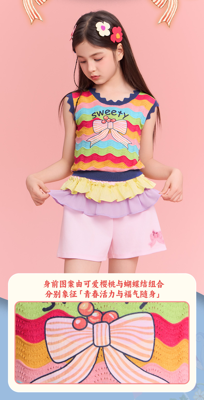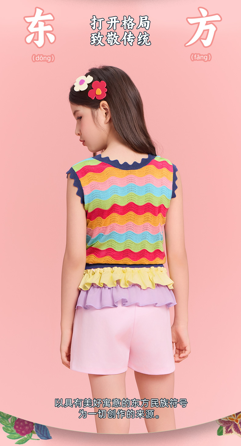 年衣童装无袖上衣2025夏季新款女孩多巴胺撞色瑞瑞彩虹背心