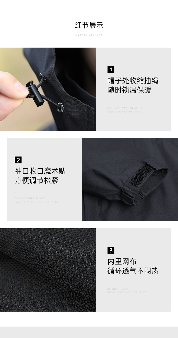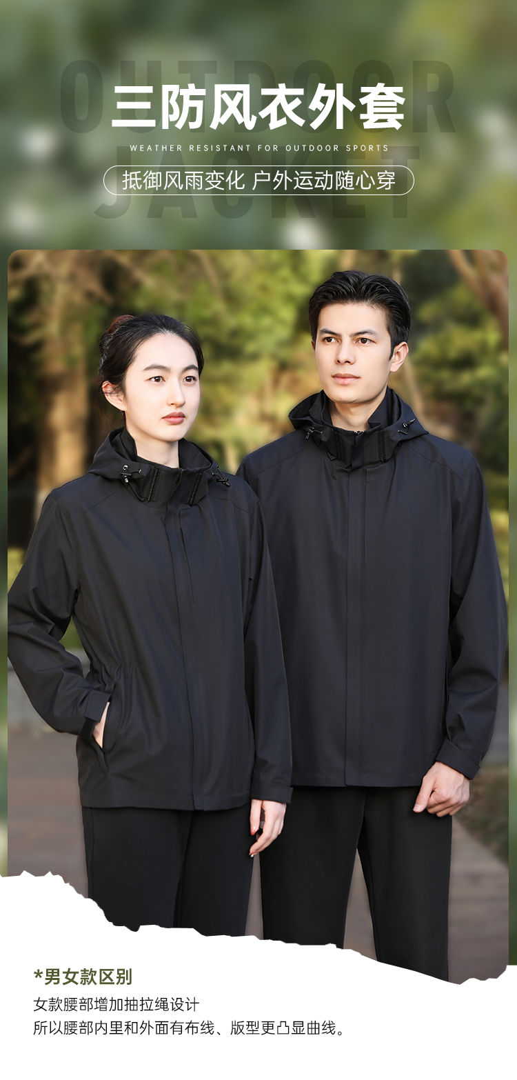 【实付满399送保温杯】【剑锋三防风衣外套】男女款户外防风防水防油污外套 可拆卸帽子长袖上衣