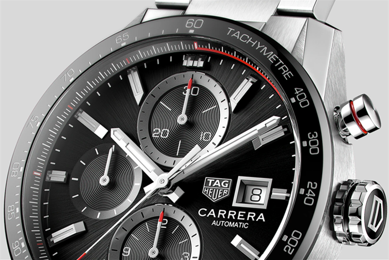 镜面 材质 | 蓝宝石水晶玻璃 | 表盘 | 精钢表壳 黑色表盘和副表盘、抛光磨砂精钢表壳和带测速刻度的黑色陶瓷固定表圈。 表盘和表壳饰有红色细节 镀铑荧光时标和指针 陶瓷固定表圈,测速刻度 日期显示 计时码表 |