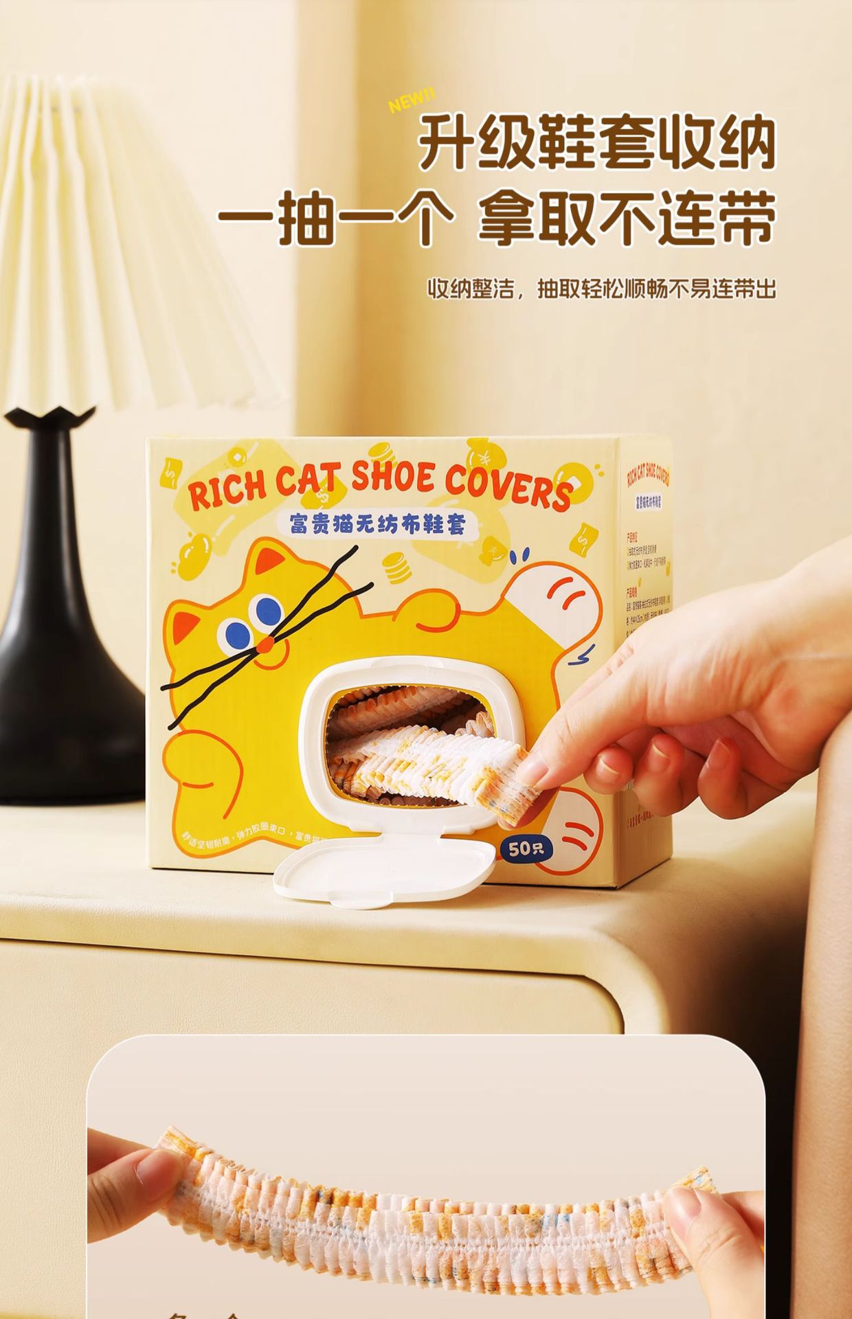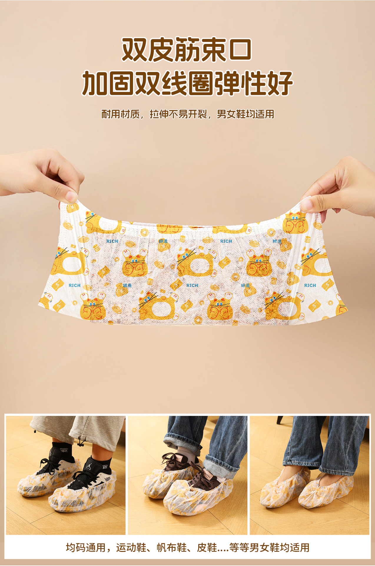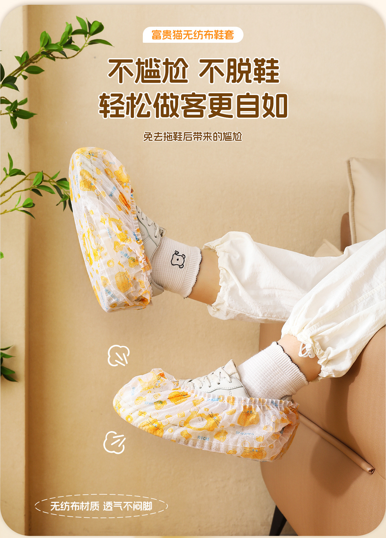 【醒粉福利9.9元50个/盒】一次性鞋无纺布鞋套 室内家用加厚成人学生防水防滑耐磨待客脚套