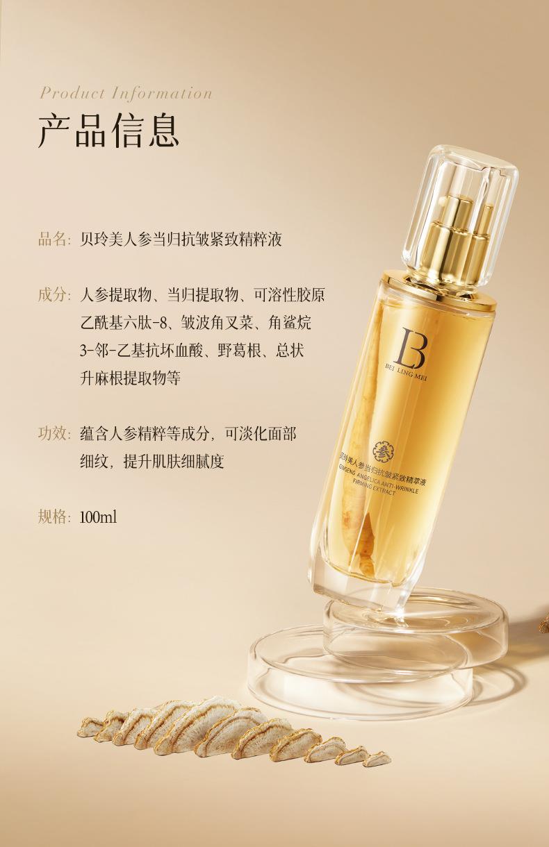 贝玲美人参当归抗皱紧致精萃液面部淡纹改善暗黄美白祛斑精华水乳