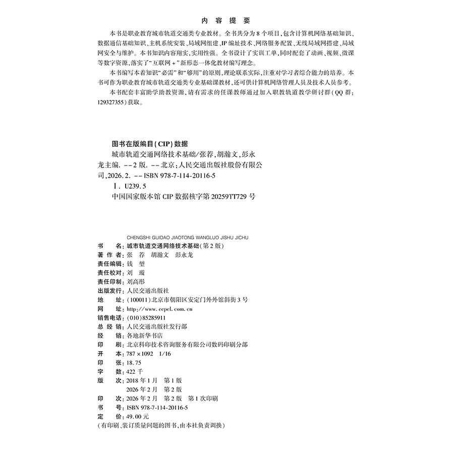书名:城市轨道交通网络技术基础(第2版)