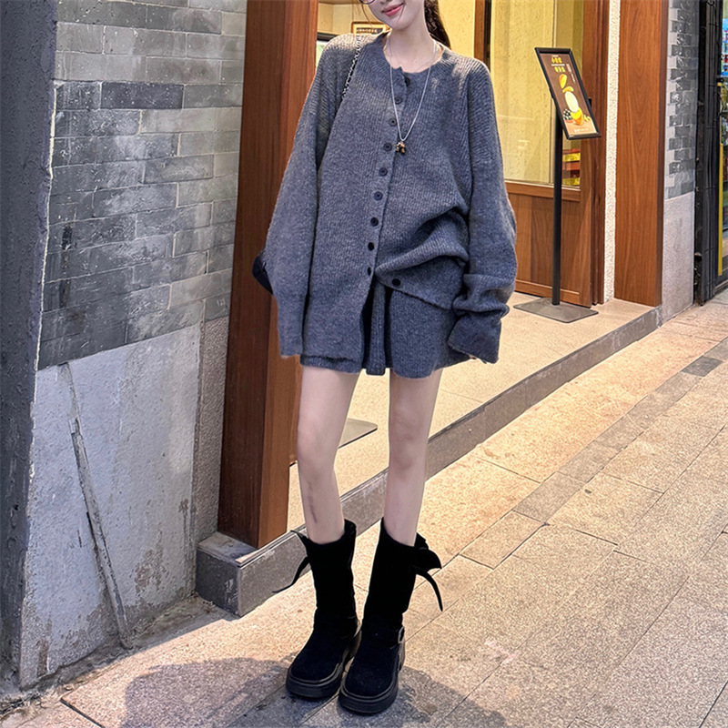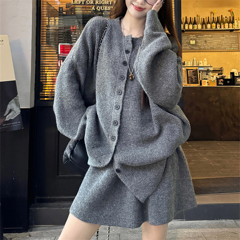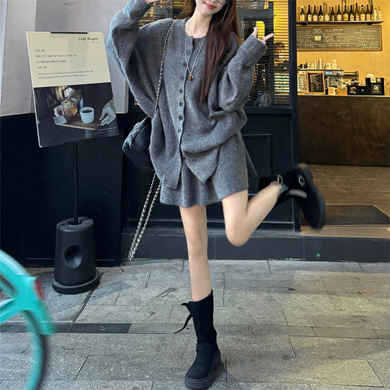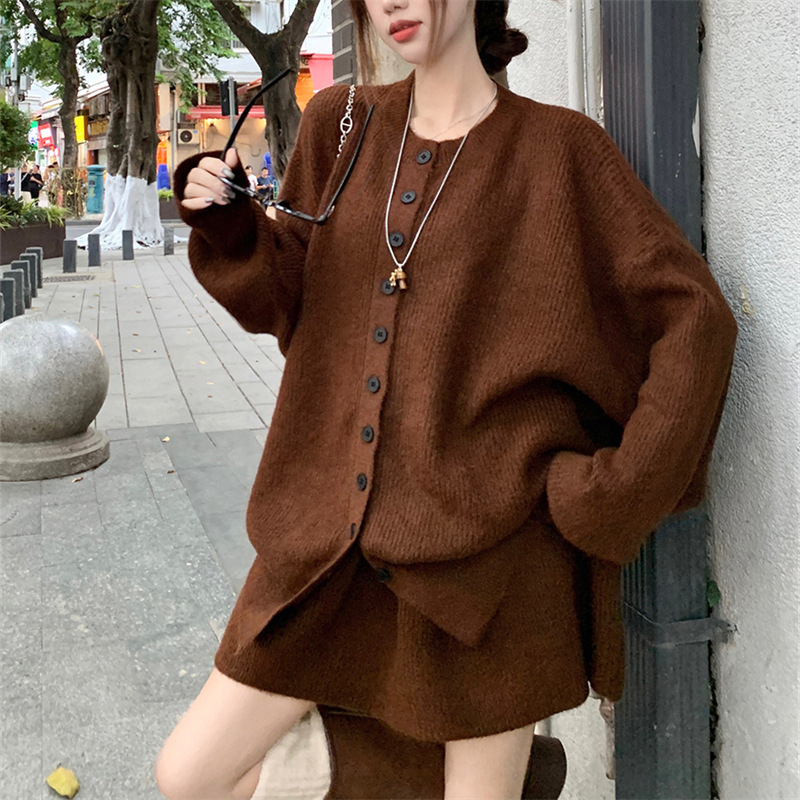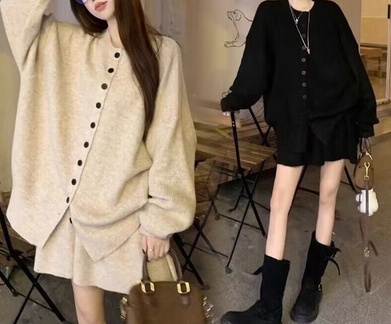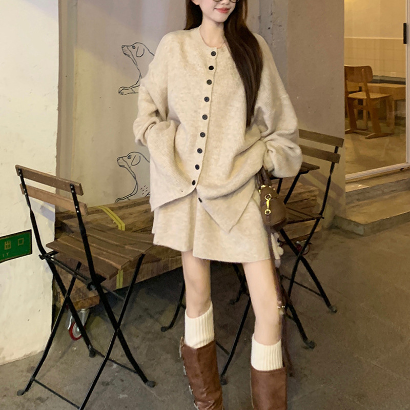 【YW】无忧购【甄选】秋冬时尚休闲慵懒风穿搭套装高级感毛衣半身裙针织开衫两件套895-713(截单后3-5天发货)