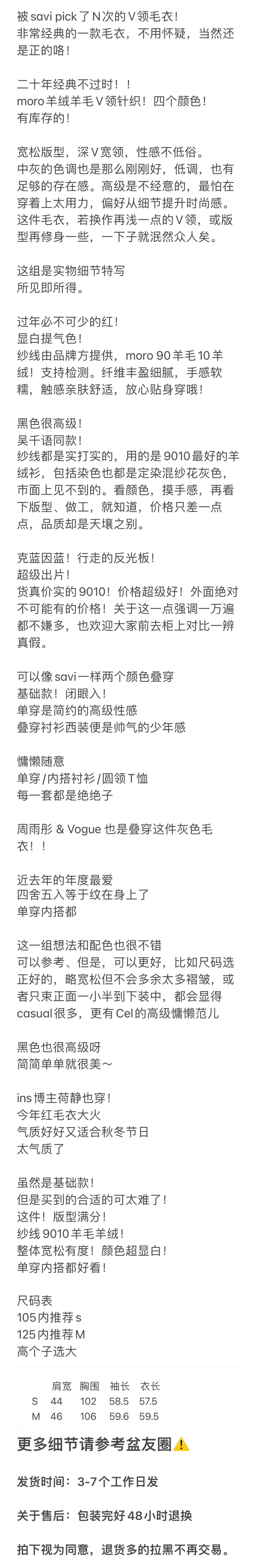 福利特价 不退不换! Moro羊绒羊毛V领毛衣 四色入! savi同款 单穿叠搭皆可