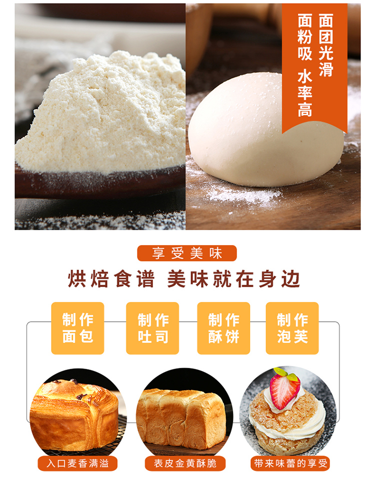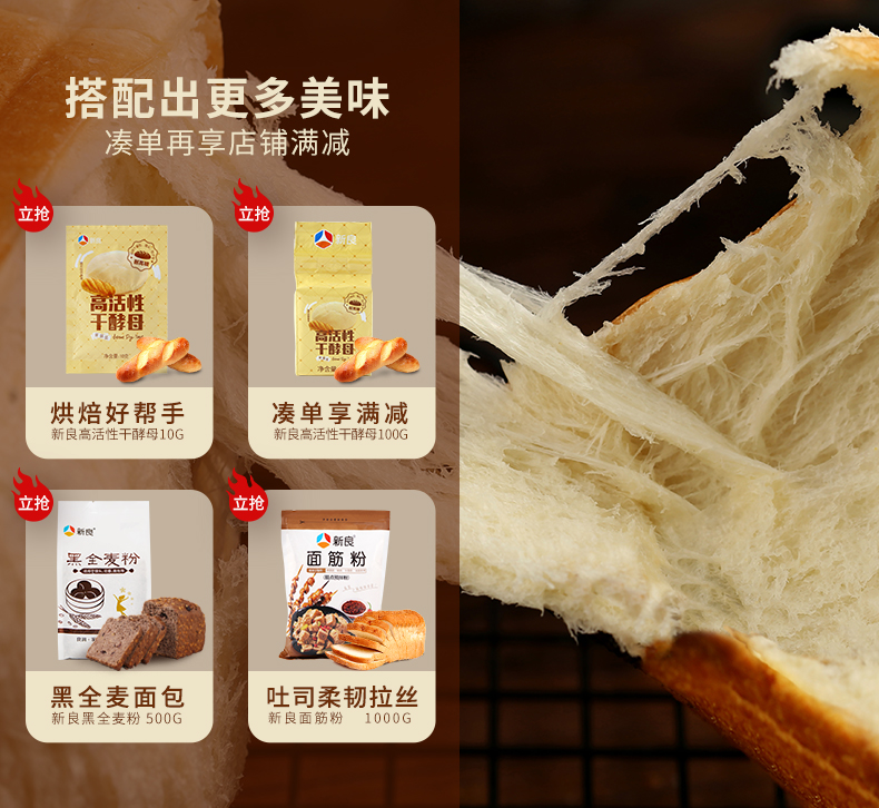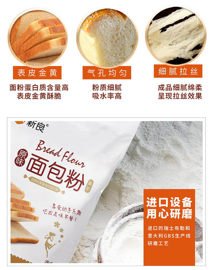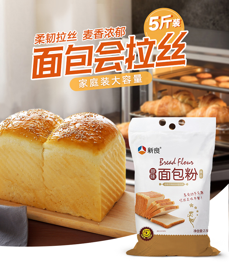 新良原味面包粉2500g 烘焙原料高筋面粉面包粉 面包机用烘焙面粉