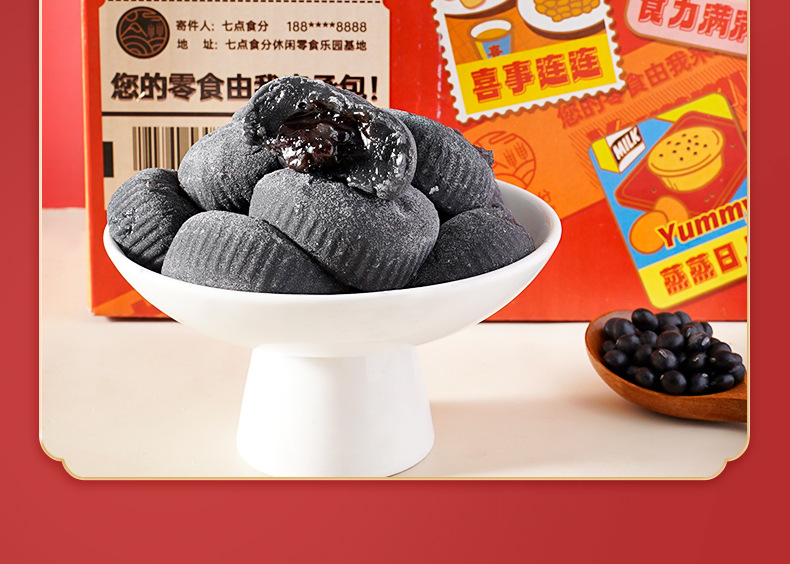 【做一个有“心”的饼!早餐糕点 五黑爆浆紫米饼】清香浓郁,回味无穷,香甜软糯越嚼越香,速速软软,营养美味健康,整箱粗粮饱腹代餐零食黑桑葚健康