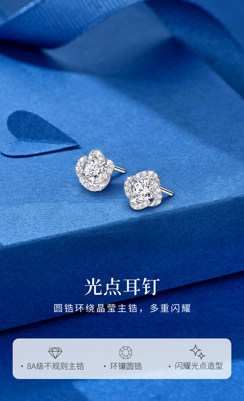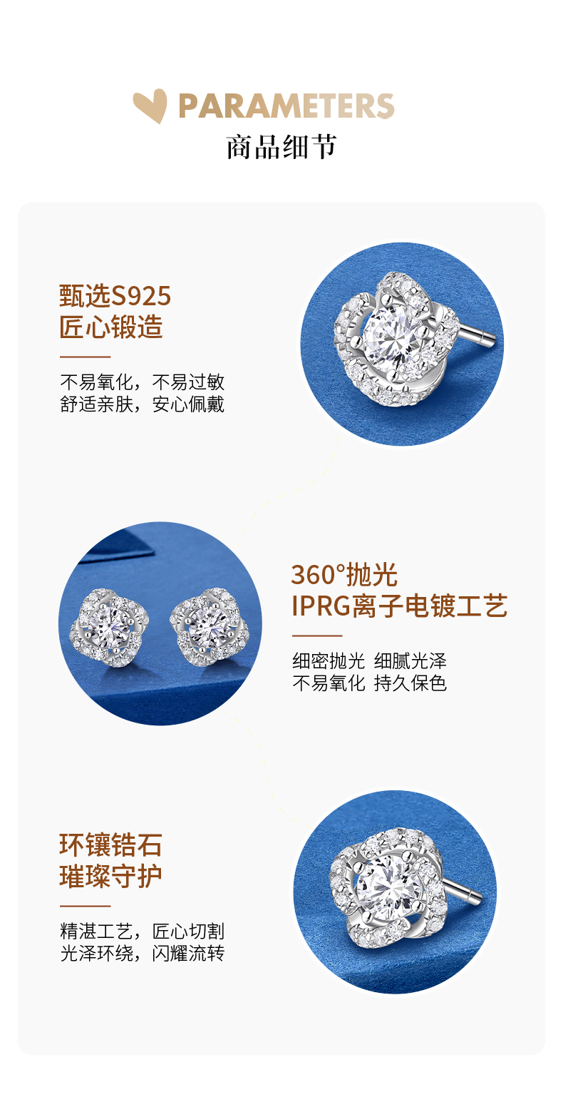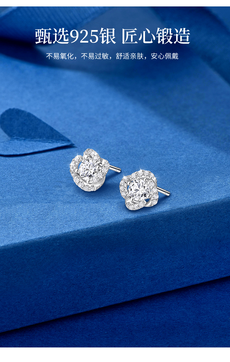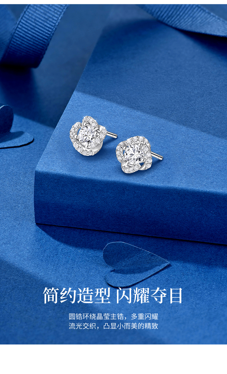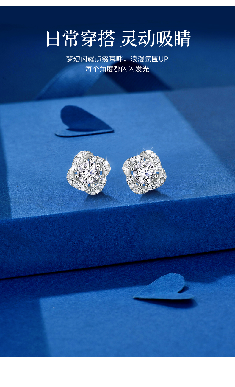 卡蒂罗/KADER 光点耳钉 幸运四叶草轻奢小众清新设计睡觉免摘耳饰 满镶锆石璀璨闪耀吸睛配饰 925银