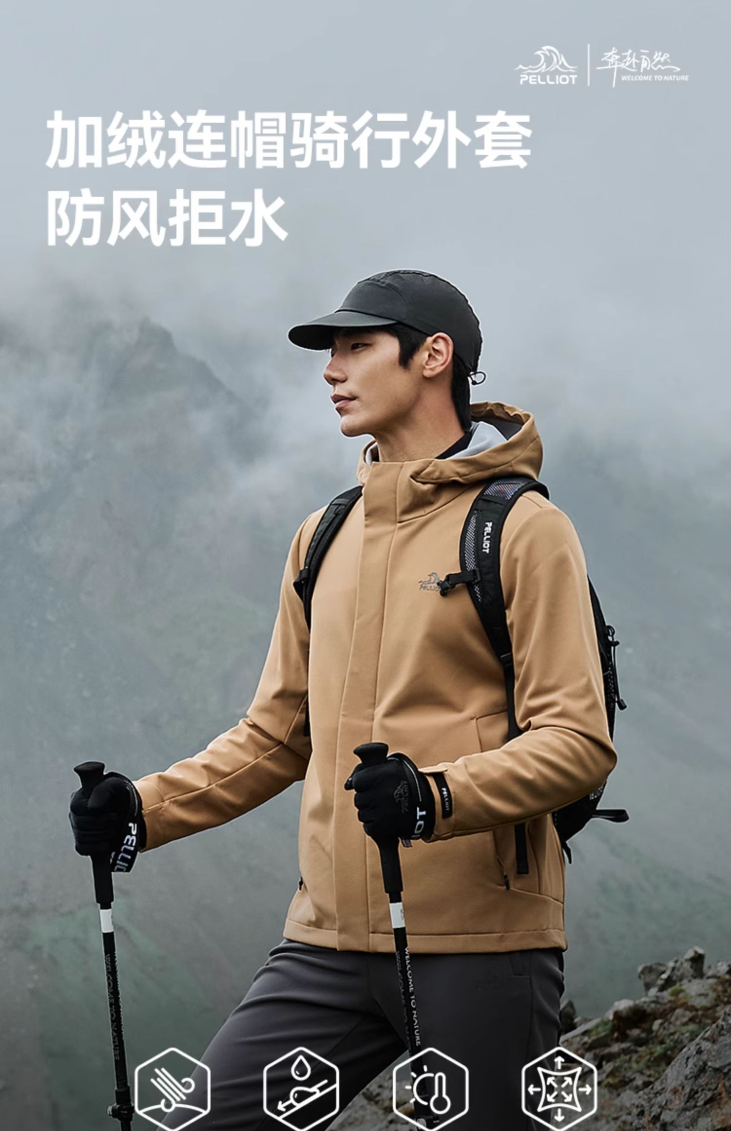 伯希和户外软壳衣男款防风防泼水夹克轻量耐磨运动外套休闲上衣女