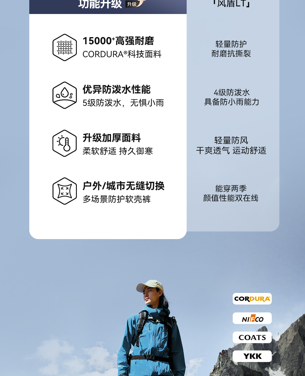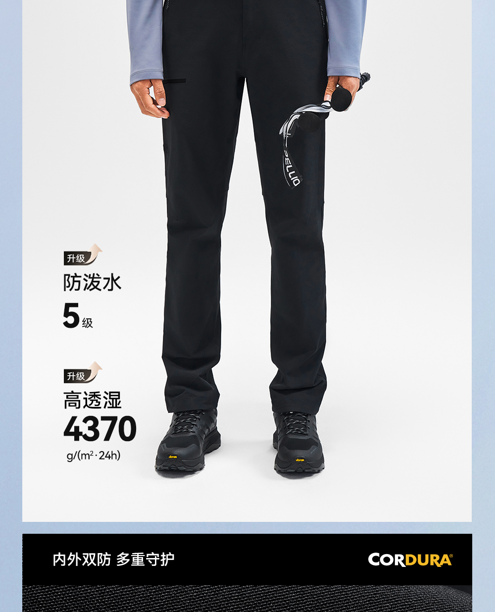 【风盾MAX】伯希和户外软壳裤男款CORDURA耐磨高弹登山裤防风长裤