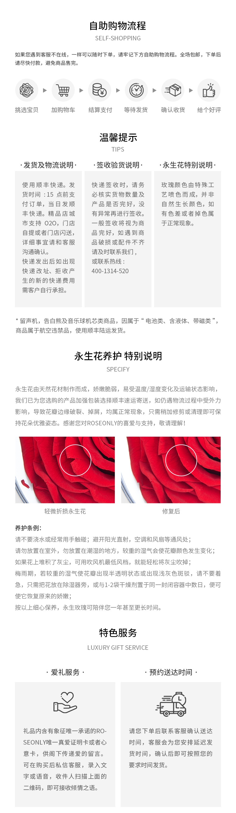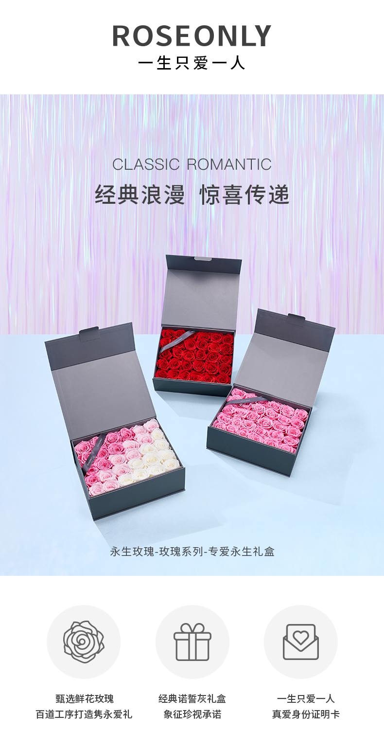 【新品爱礼】ROSEONLY诺誓 永生玫瑰 玫瑰系列 专爱永生礼盒 红色 粉色 白色 渐变色 送朋友 情人节礼物