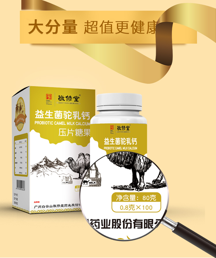 白云山敬修堂益生菌片咀嚼片补钙糖果乳钙婴幼儿益生菌