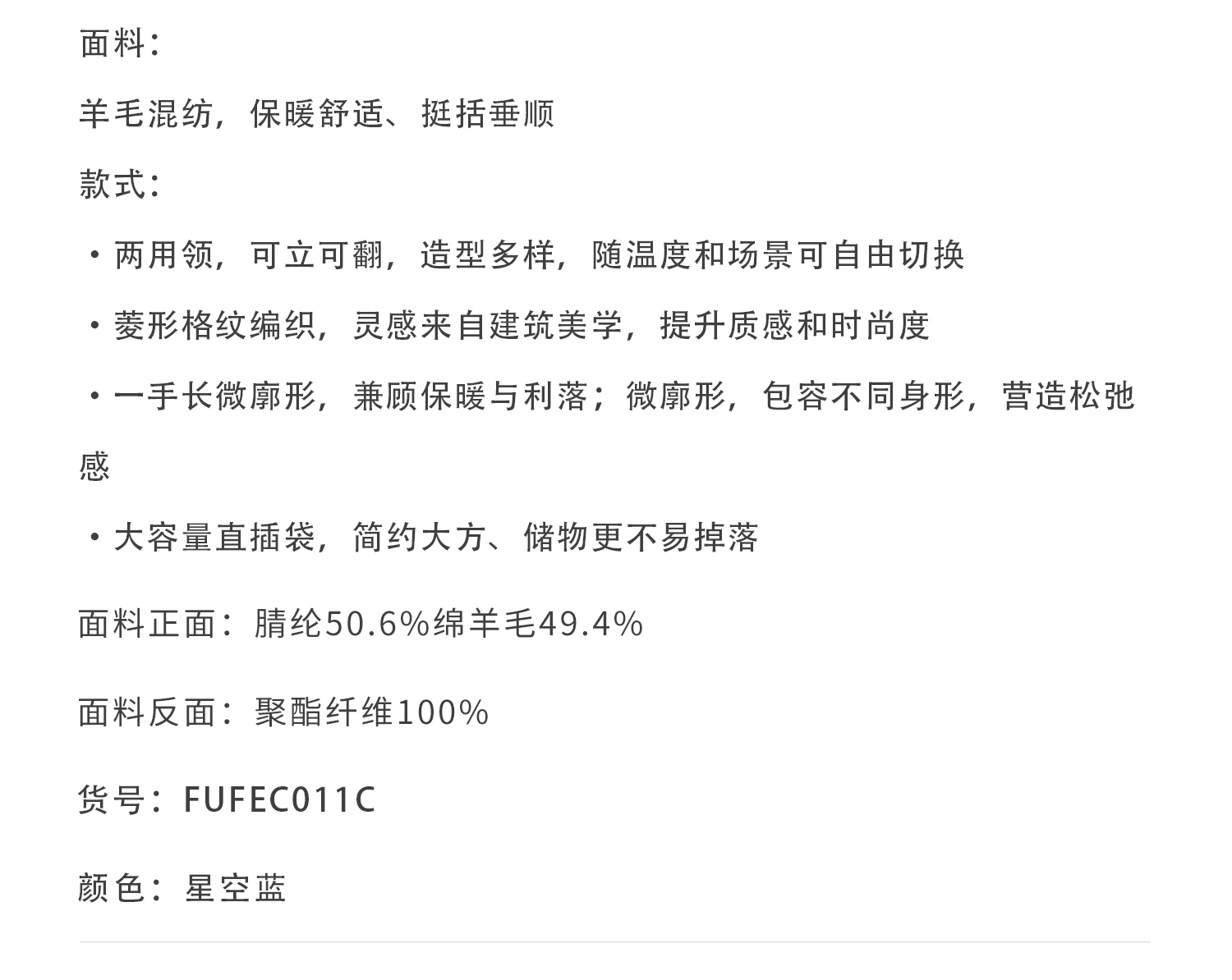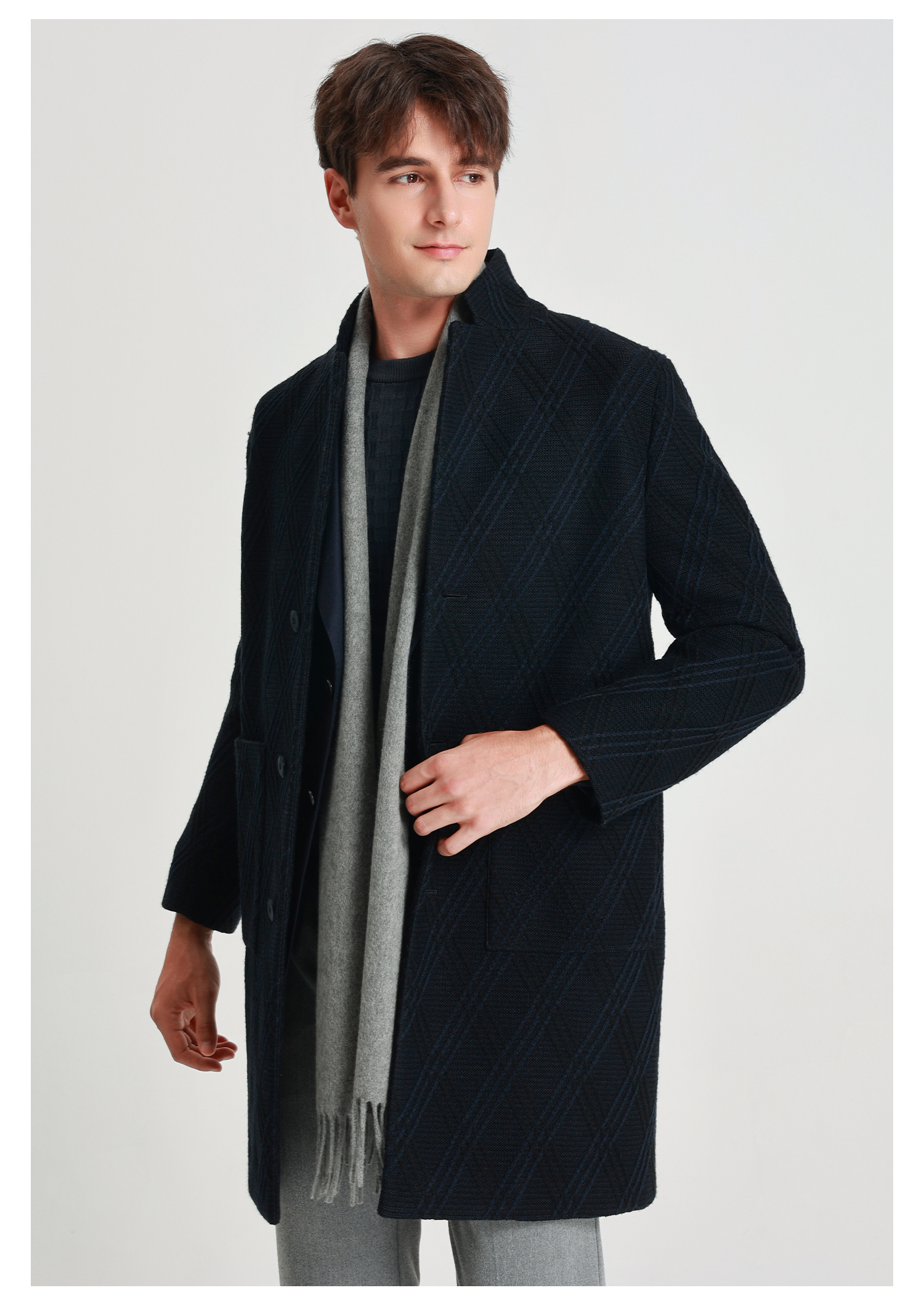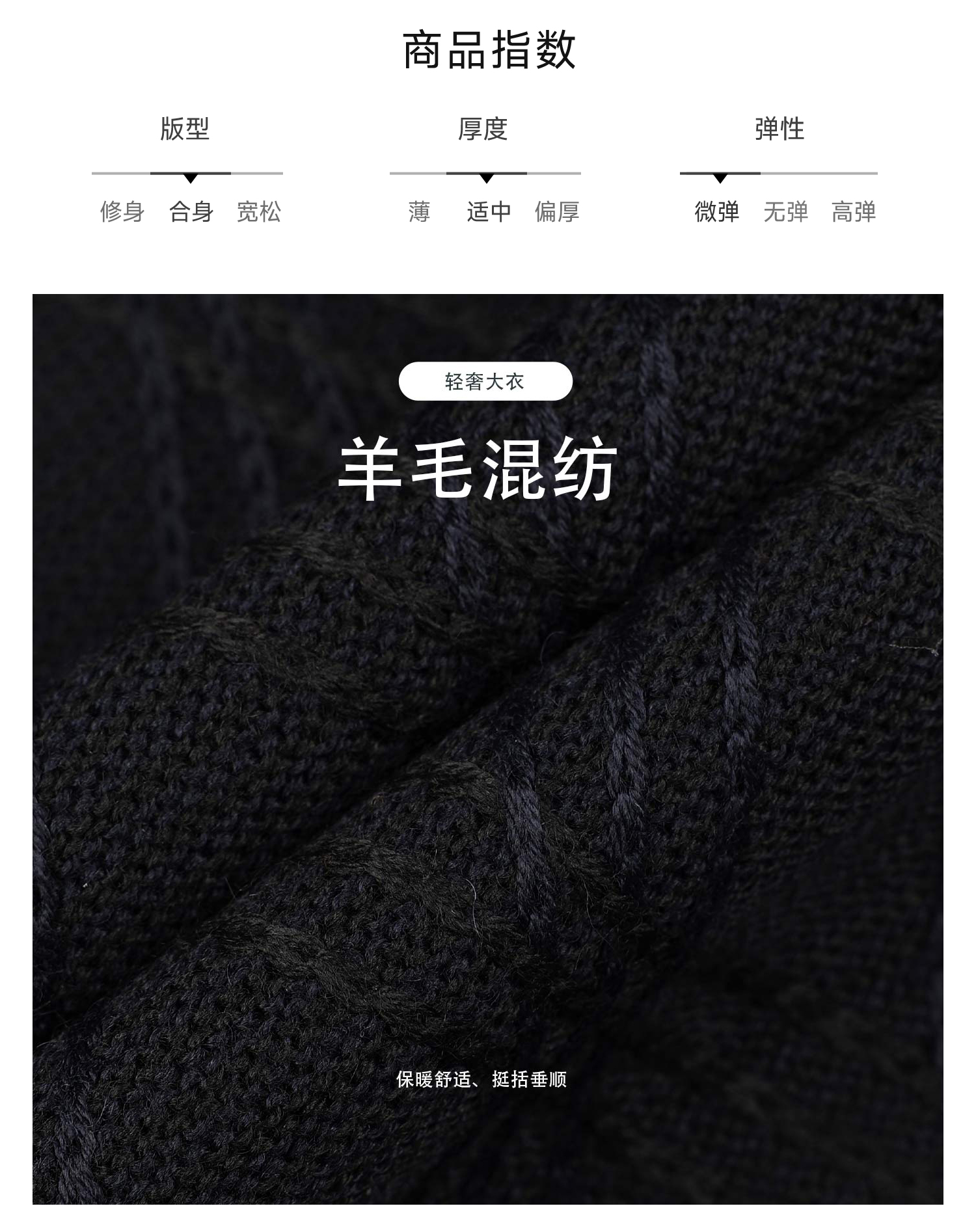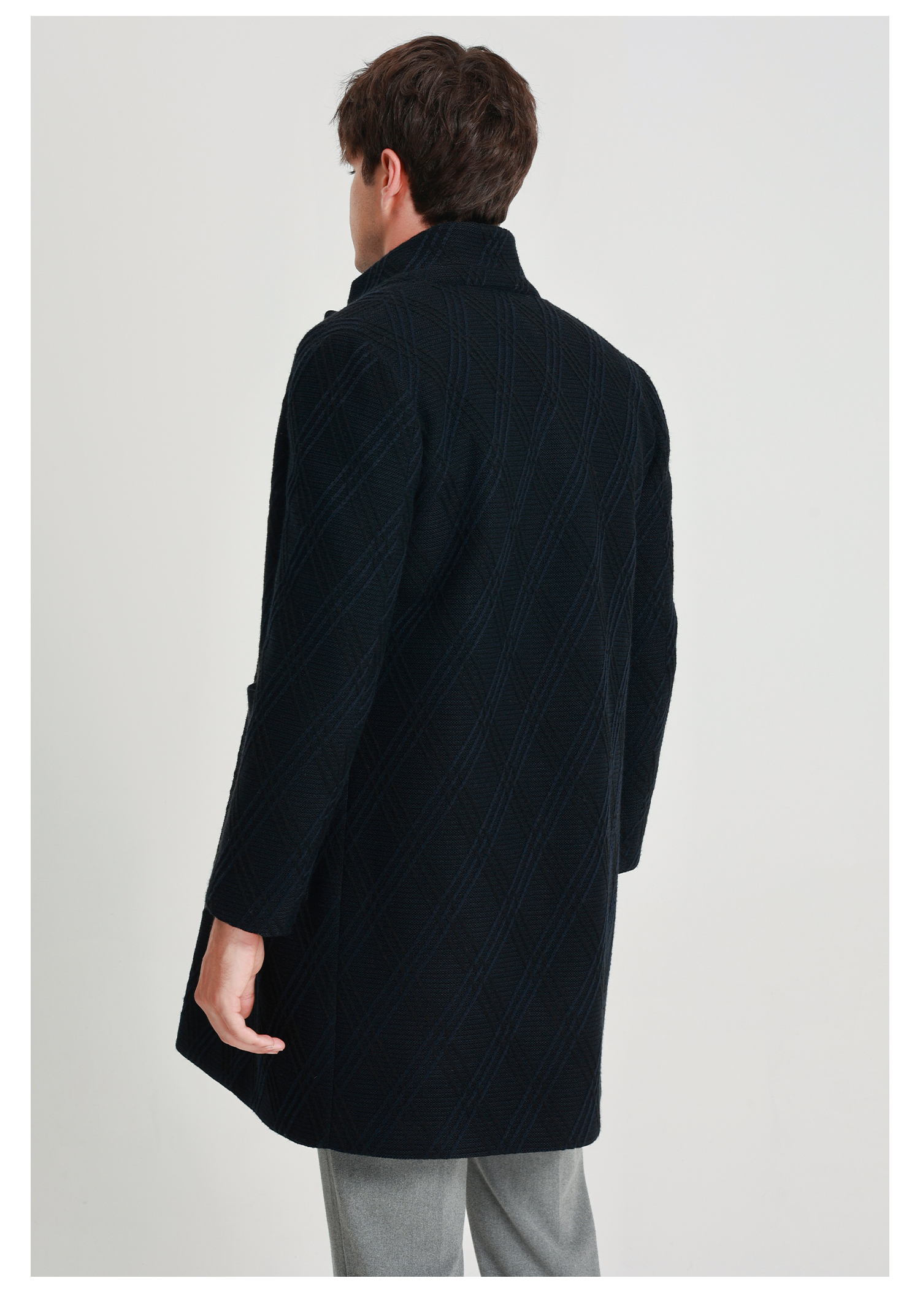 callisto星空蓝羊毛混纺微阔菱形格纹编织大衣
