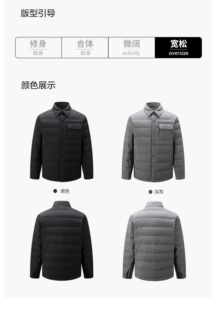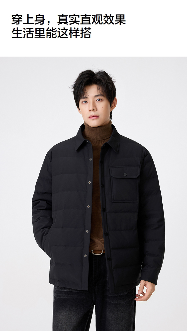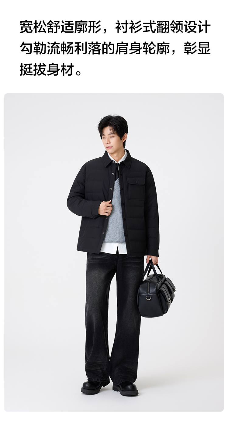 gxg.jeans男装【衬衫式羽绒服】25冬季防钻绒翻领工装保暖商务男士羽绒服外套K&C