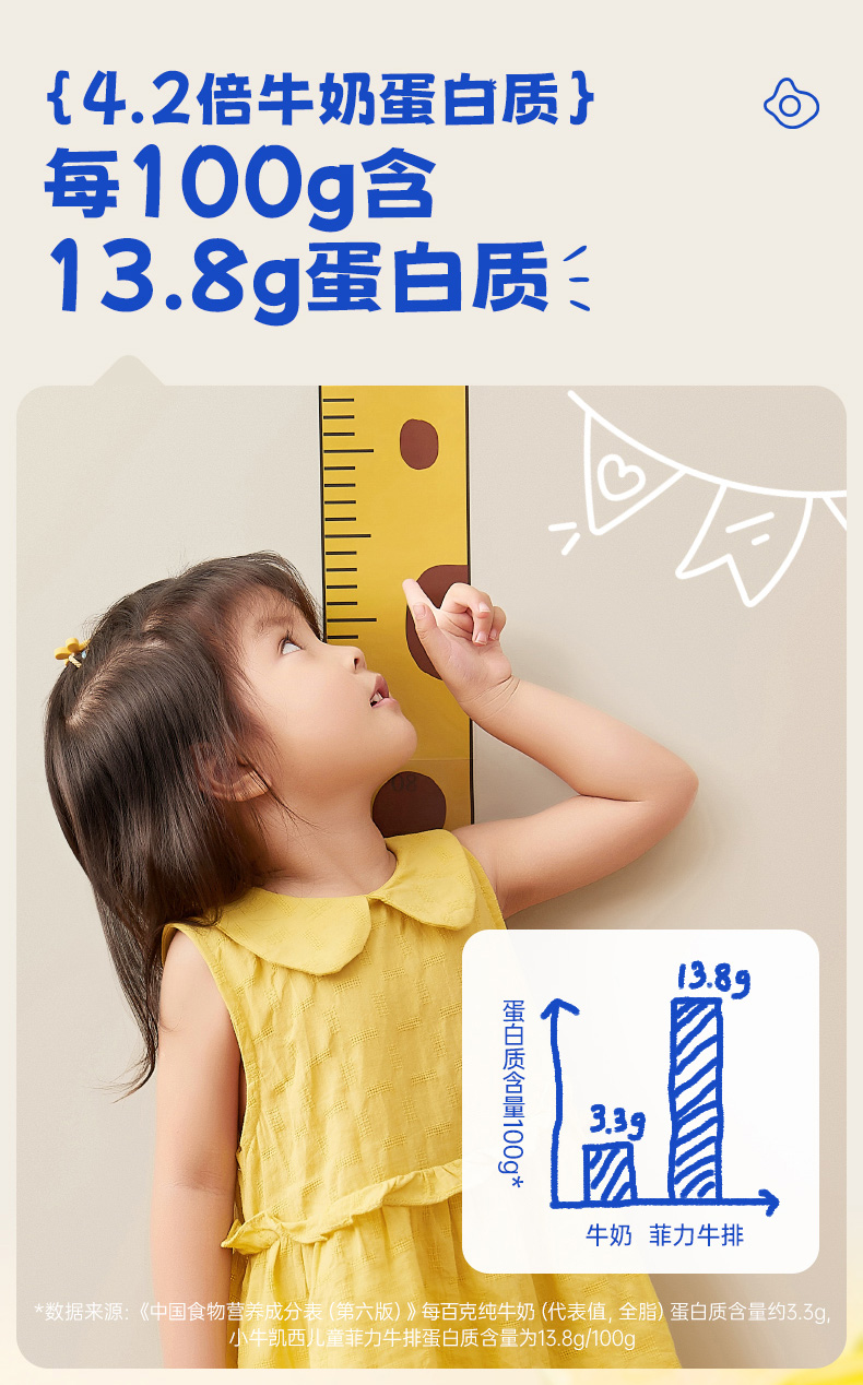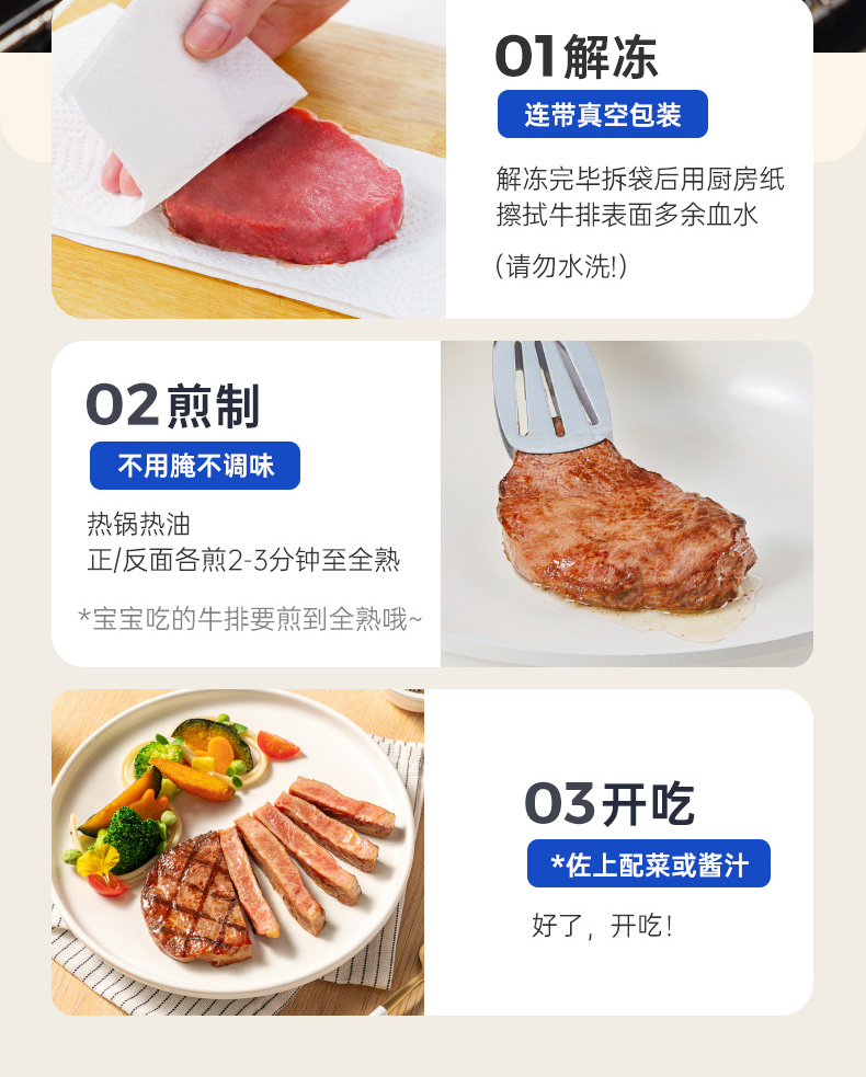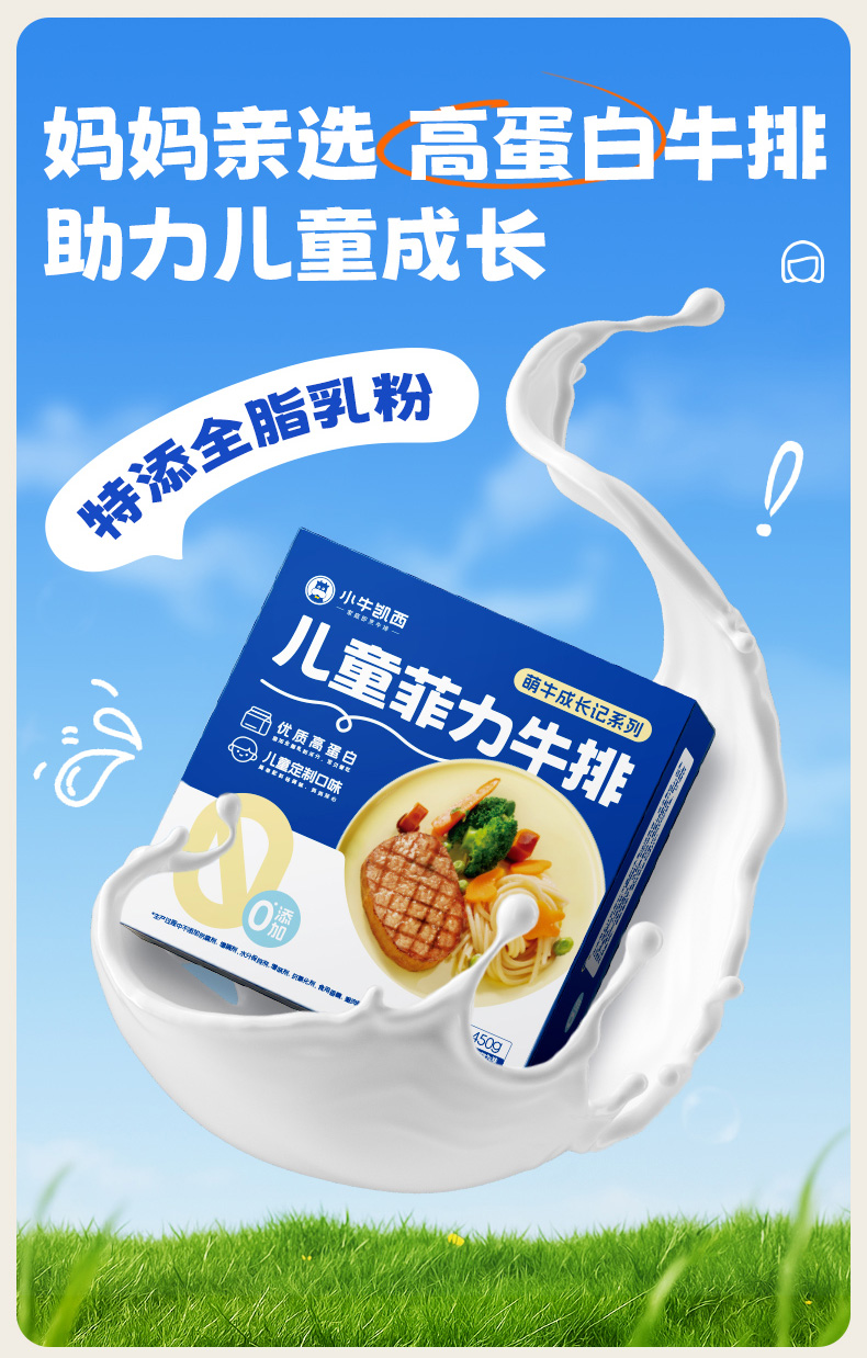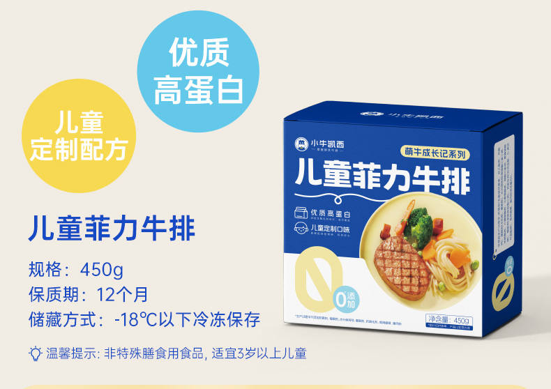 【任选4件5折】小牛凯西儿童菲力牛排450g*1送番茄酱10g*5