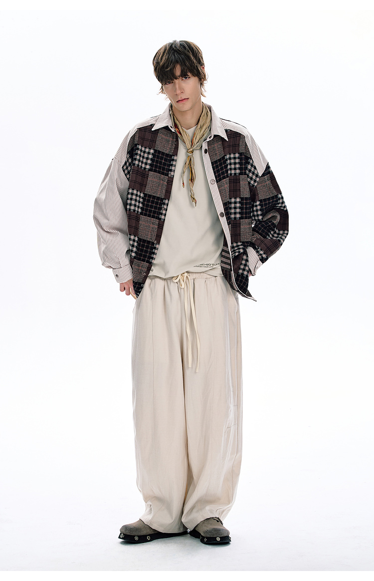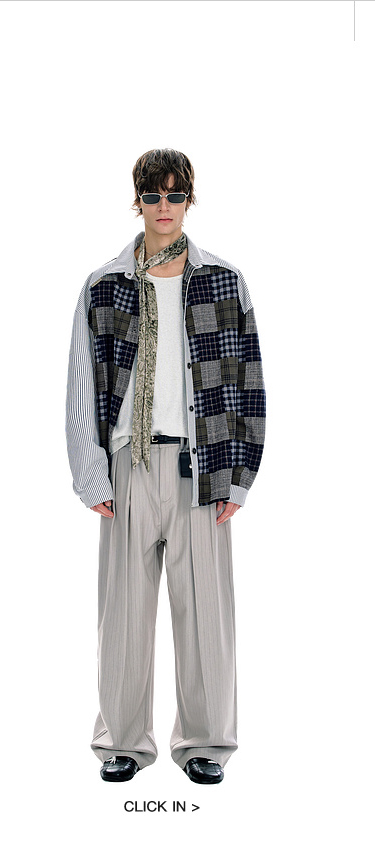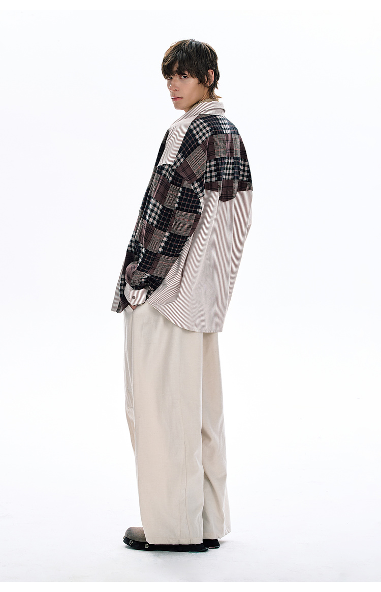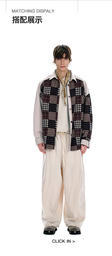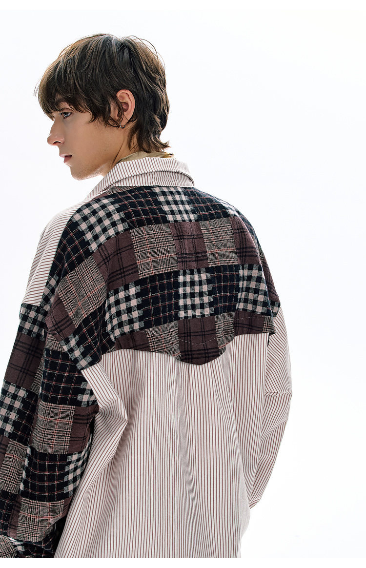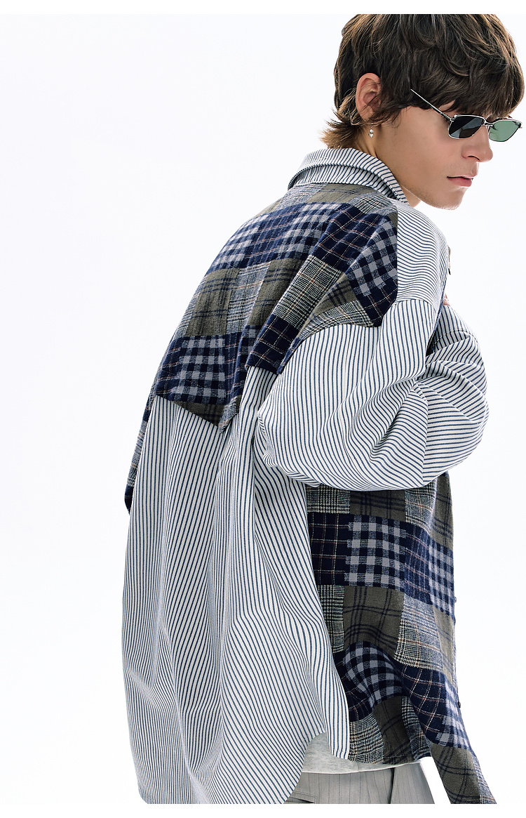 BJHG不计后果复古格子衬衫外套男款春季叠穿内搭拼接条纹翻领衬衣
