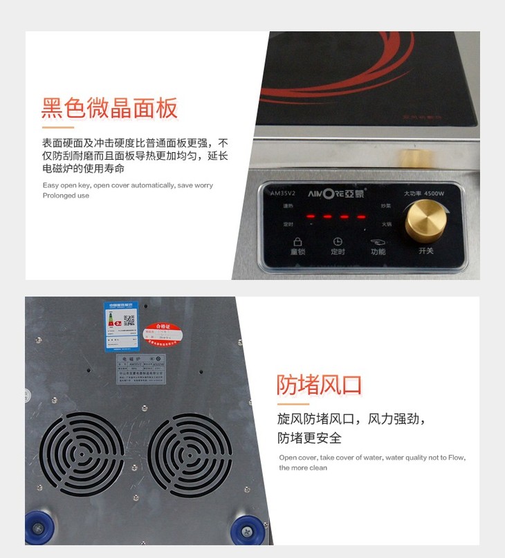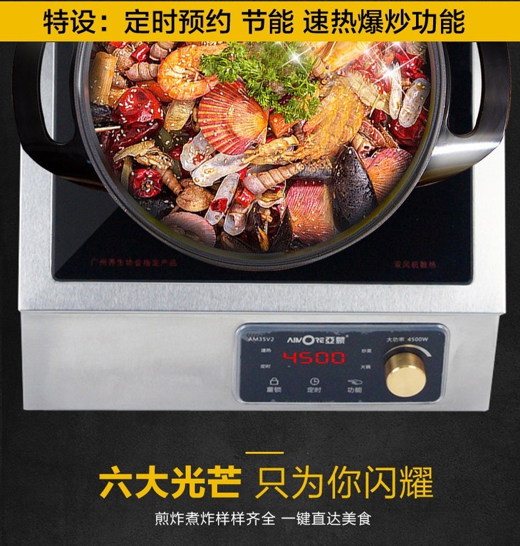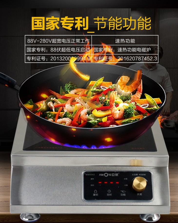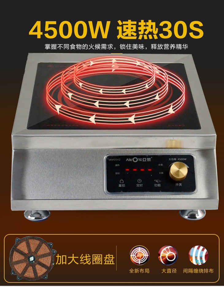 亚蒙 电磁炉 35V2 4500W 大功率 旋钮开关 低压启动(业务通知下架)