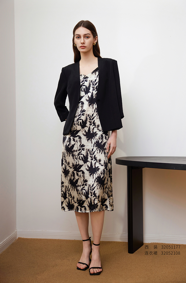 【V领吊带真丝连衣裙】25年春夏新品女士桑蚕丝印花中长款印花裙子