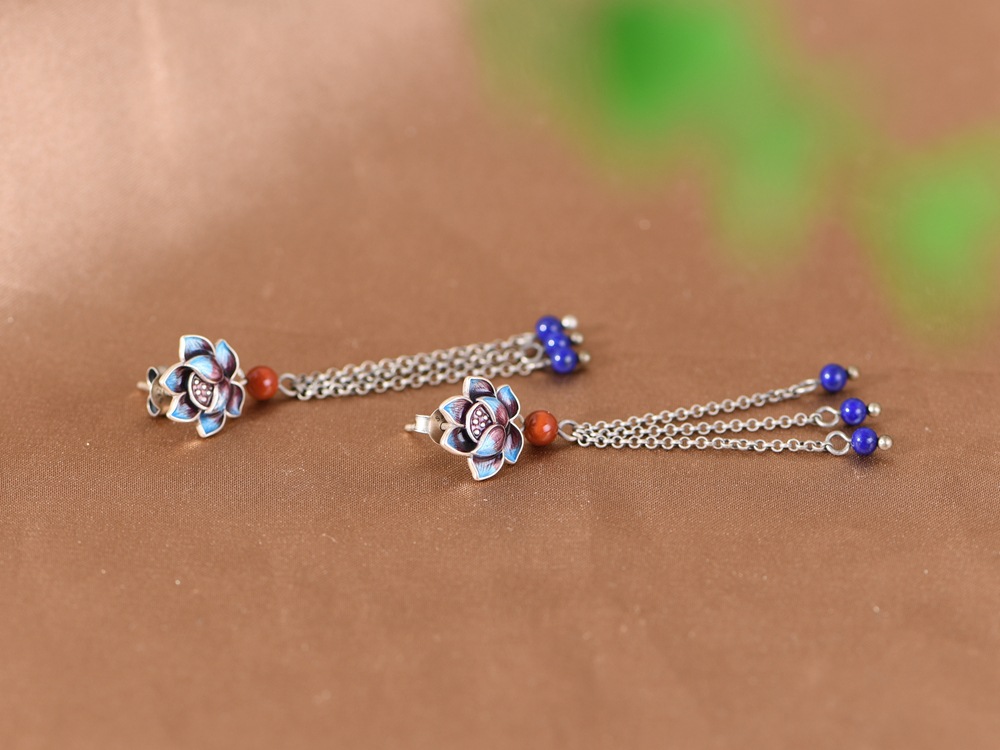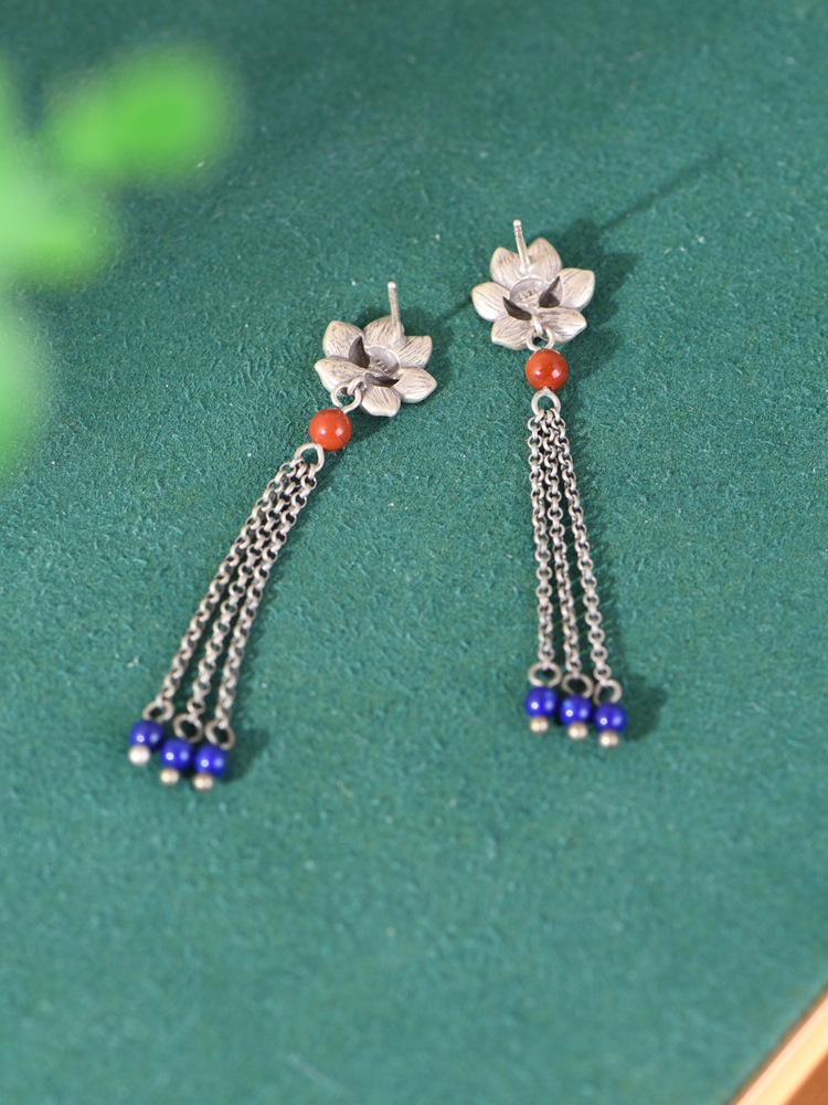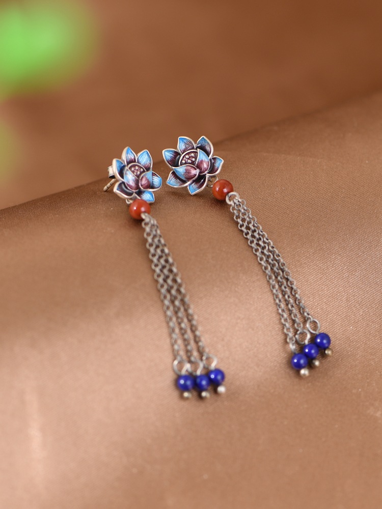 【莲风归影】S925银烧蓝莲花青金石流苏耳饰【SCH-SY33159】