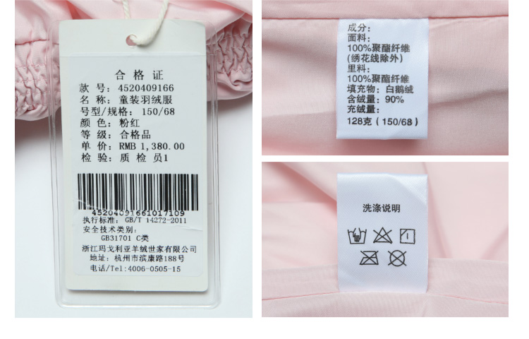| 含绒量: 90% | 材质成分: 聚酯纤维100% |