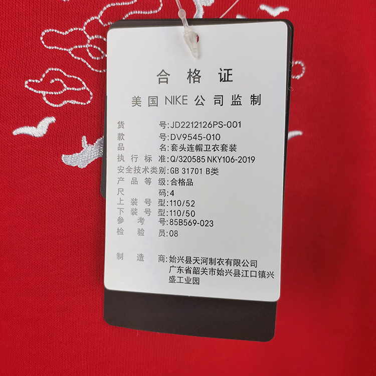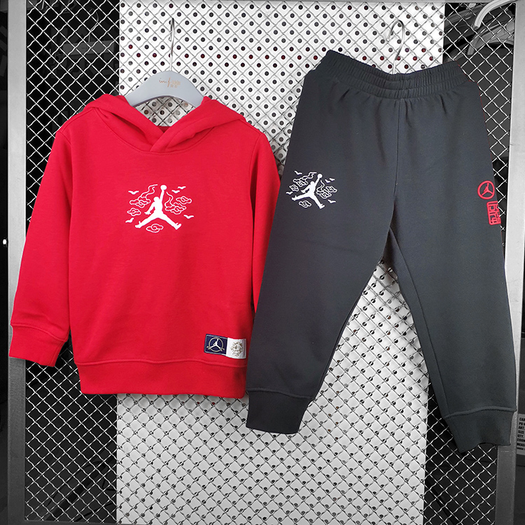 耐克-童衣类JORDAN童装春夏新年款儿童套头长袖带帽卫衣套装 JD2212126