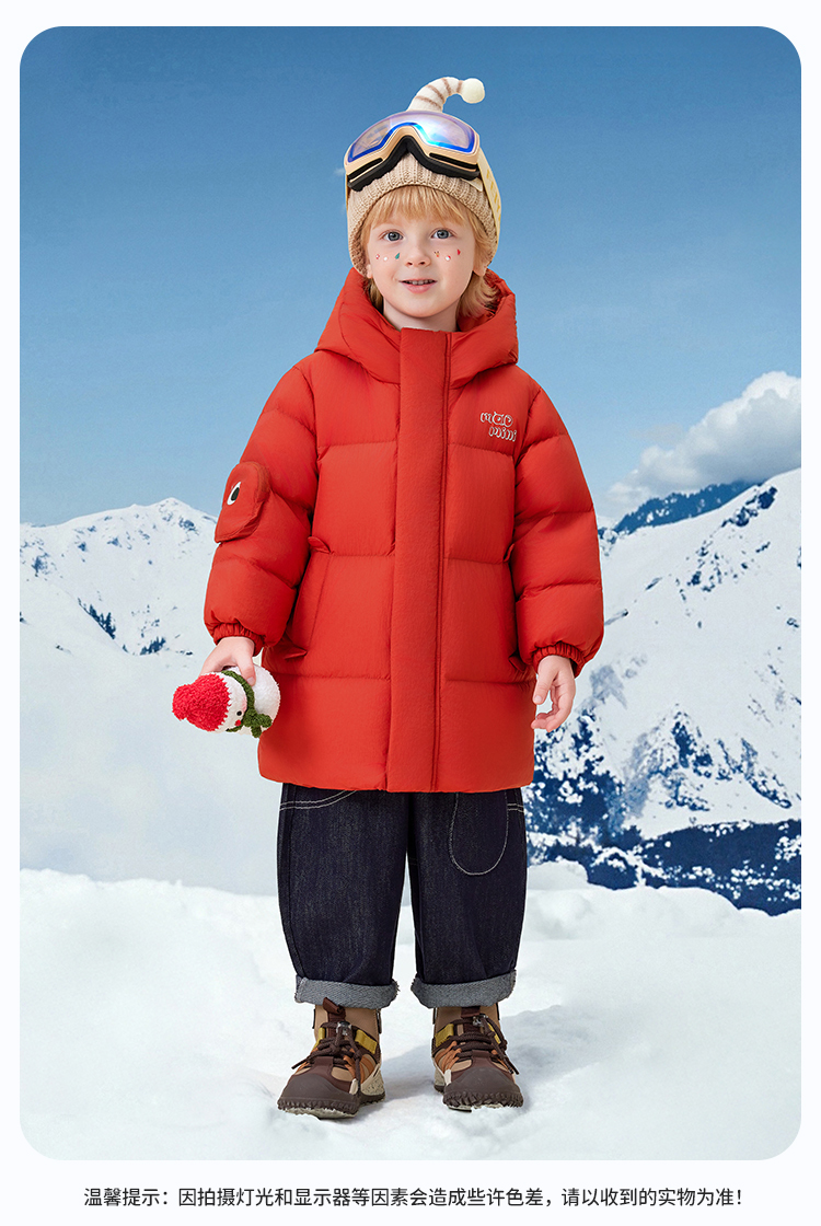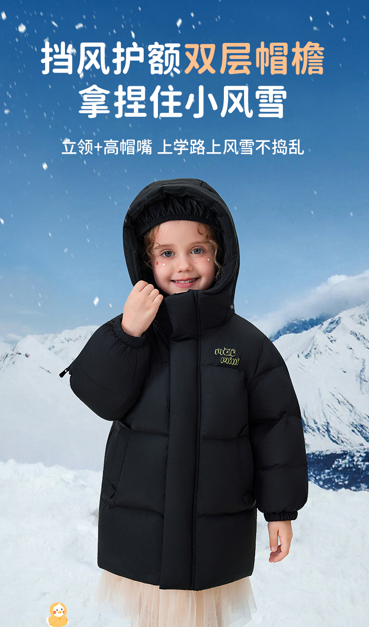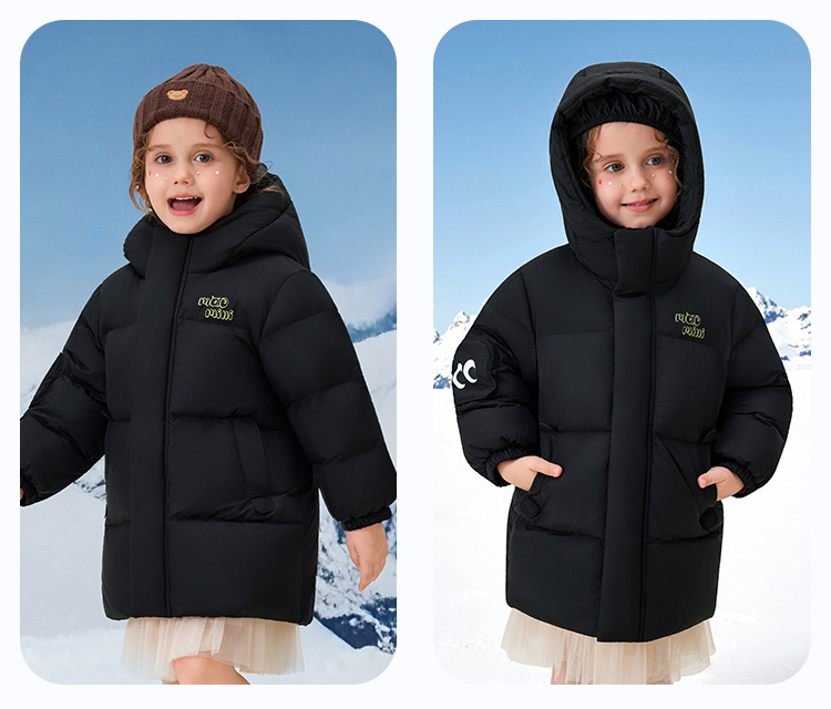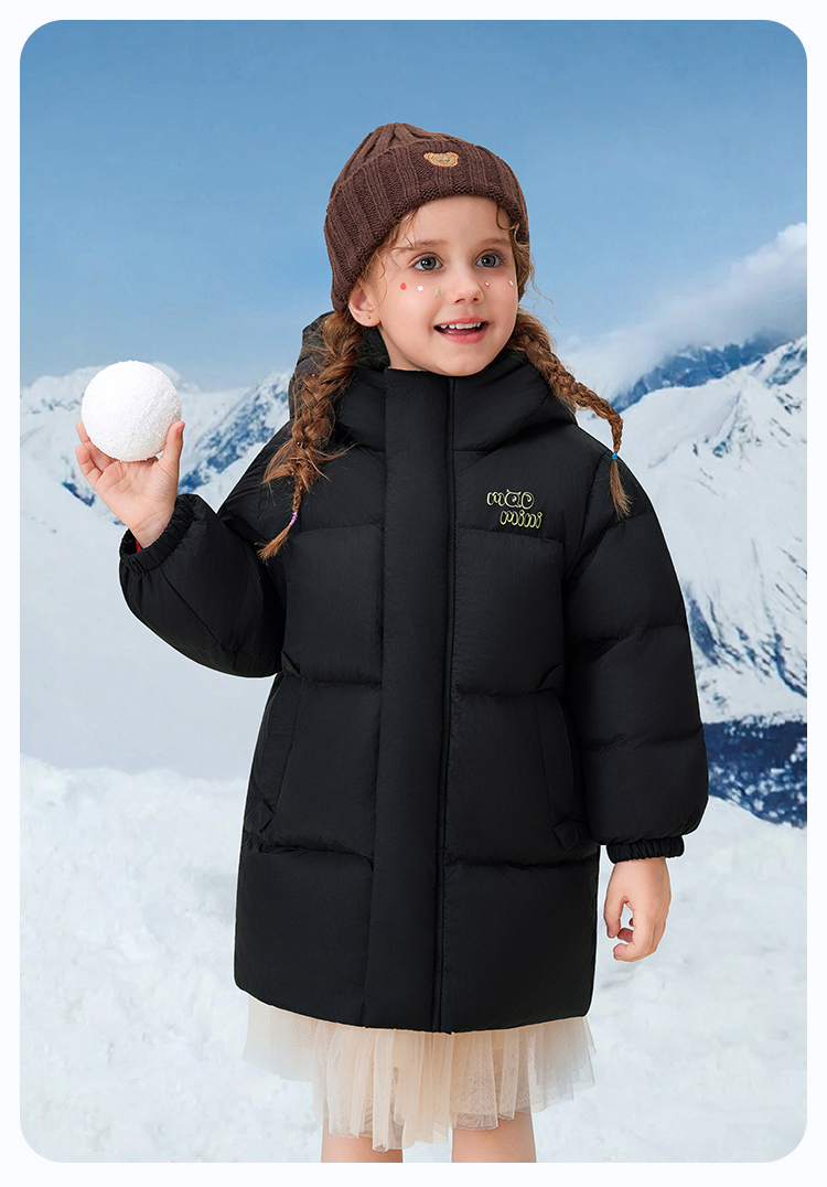 【90绒+中长款】【90-140】【MQDmini】男女童加厚保暖连帽羽绒服