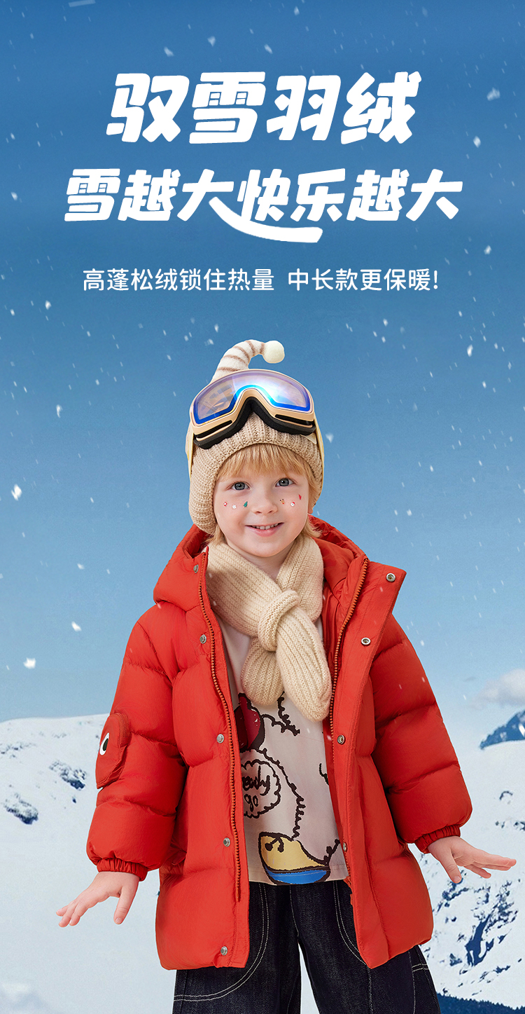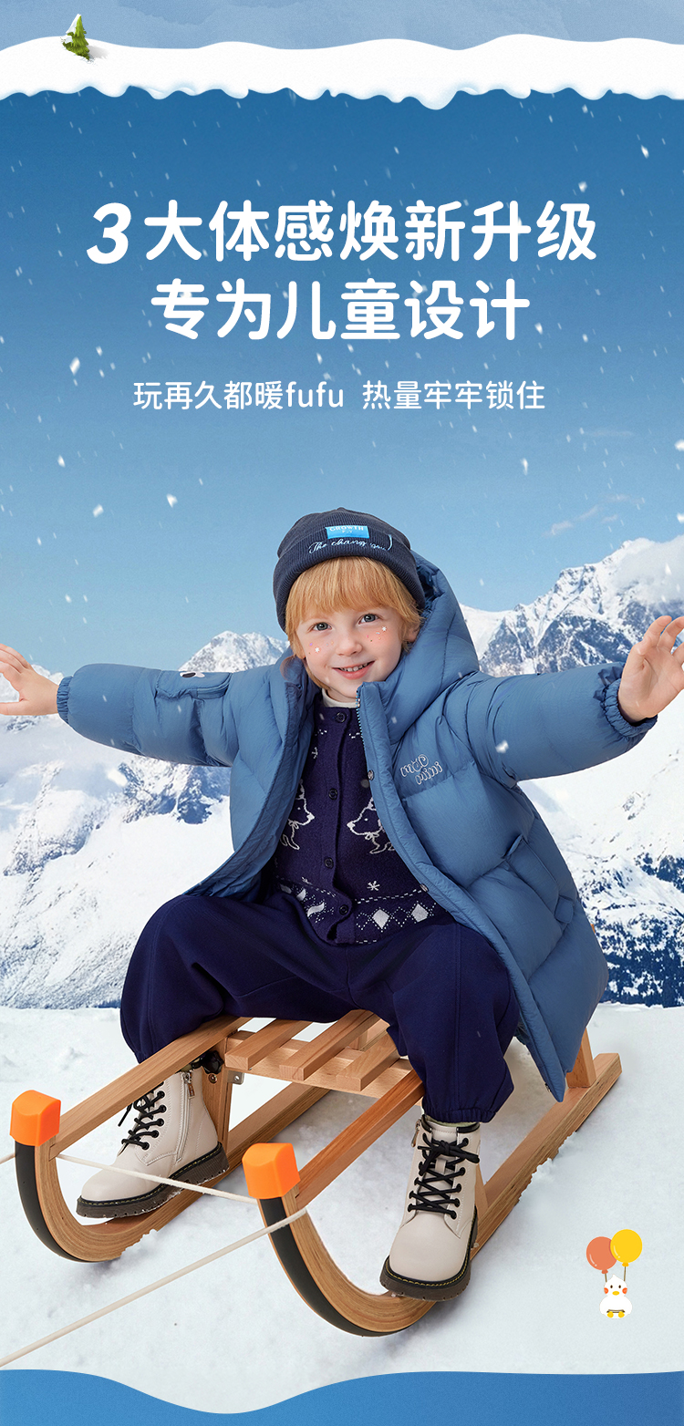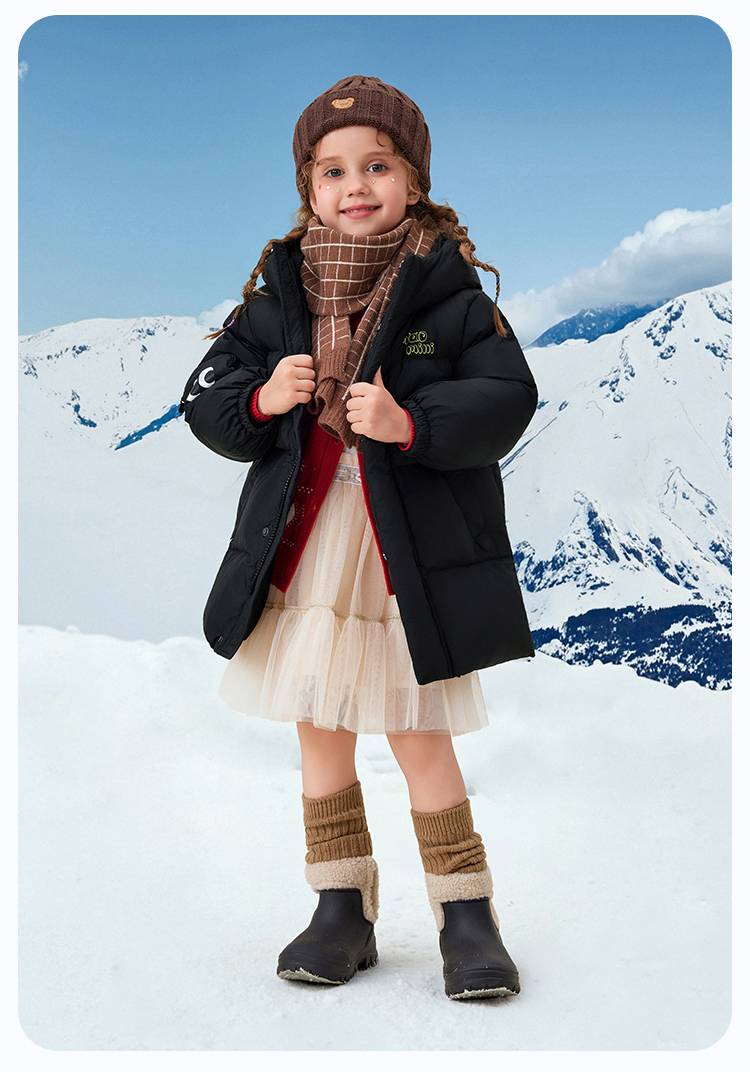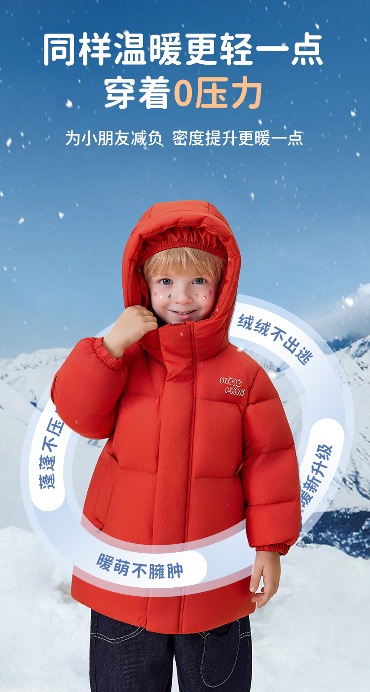 【90绒+中长款】【90-140】【MQDmini】男女童加厚保暖连帽羽绒服